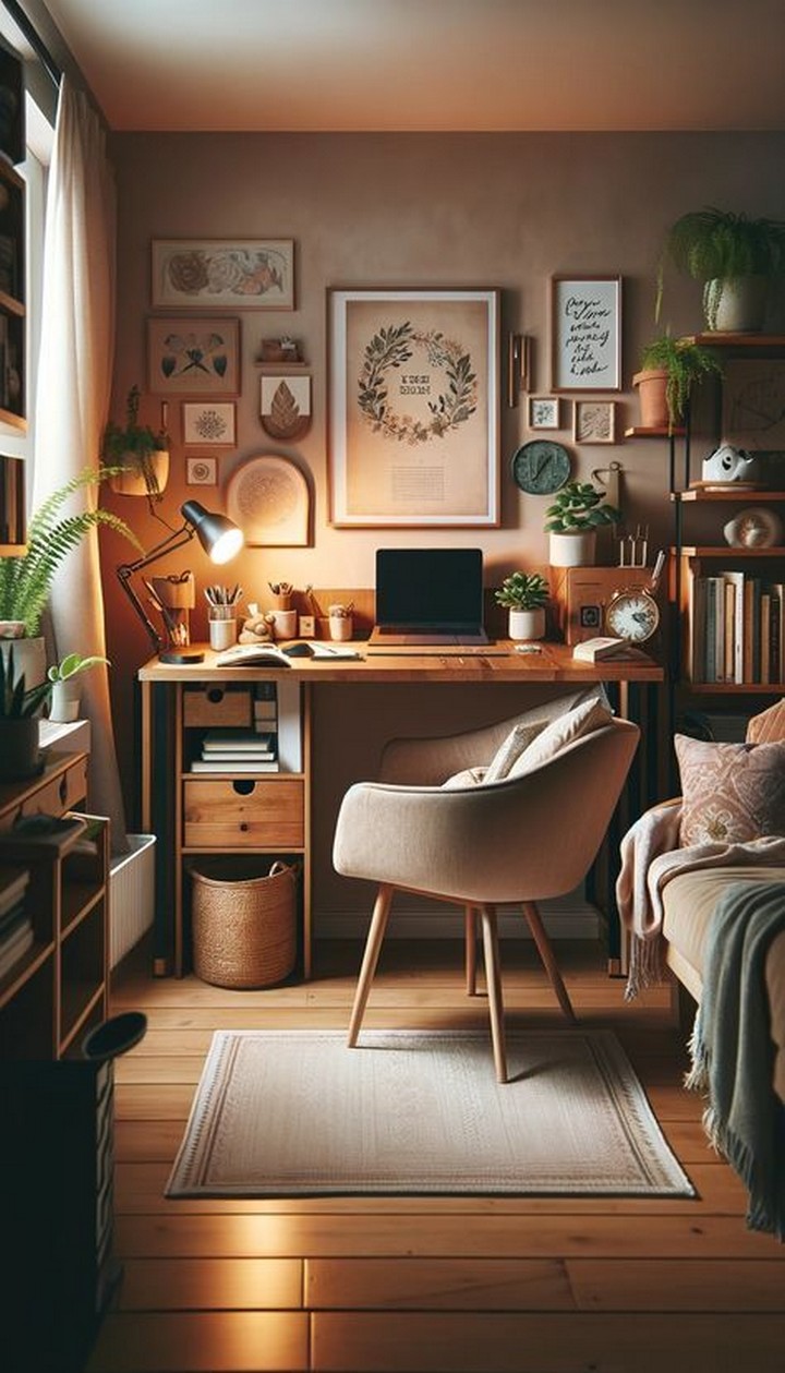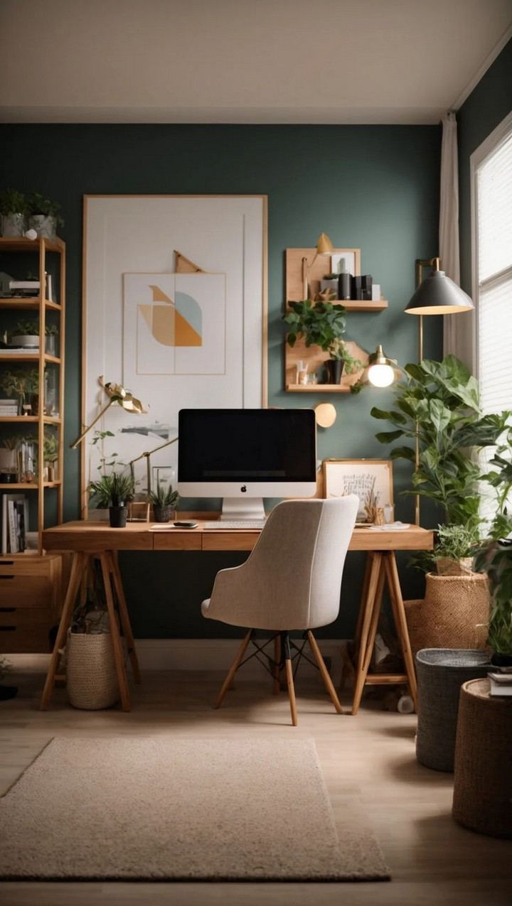 Adding personal touches to your home office can make the space feel more inviting and inspiring. Display motivational quotes, artwork, or photos that resonate with you and help create a positive ambiance. Consider incorporating plants for a pop of greenery and to improve air quality, or add a cozy rug to make the space feel homier.