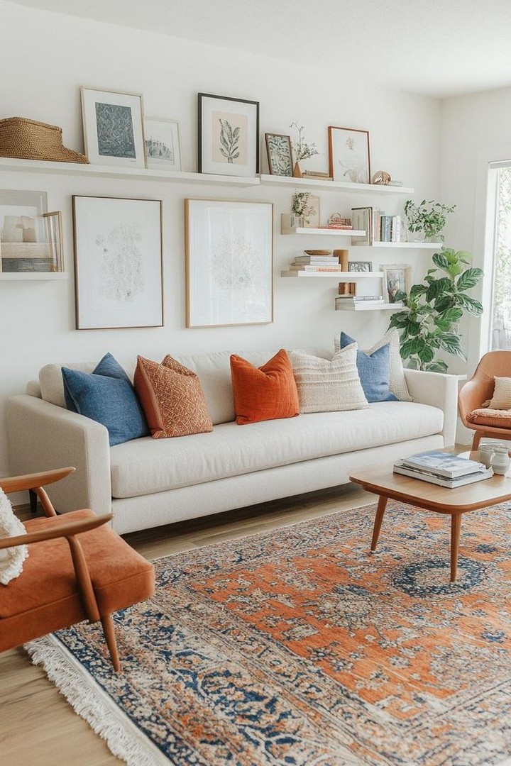 - Accent Colors: Introduce pops of color through decor items like throw pillows, artwork, and rugs. Soft pastels, earthy tones, or muted blues and greens can add personality without overwhelming the space.