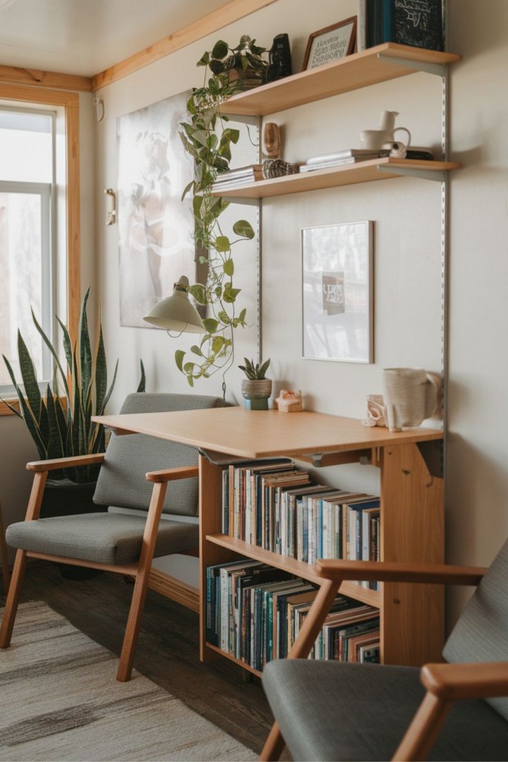 - Tall Bookshelves: Use tall, narrow bookshelves to keep things organized without occupying too much horizontal space.