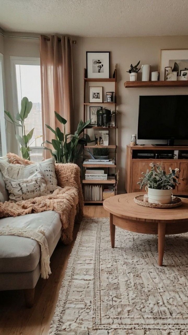 Texture adds depth and warmth to your apartment living room, making it feel cozy and inviting. Layering rugs, mixing different fabrics, and adding textured pillows can bring your space to life without taking up extra room.