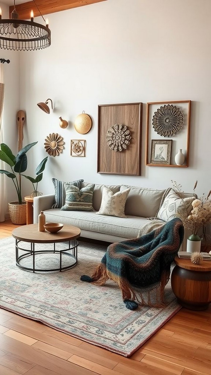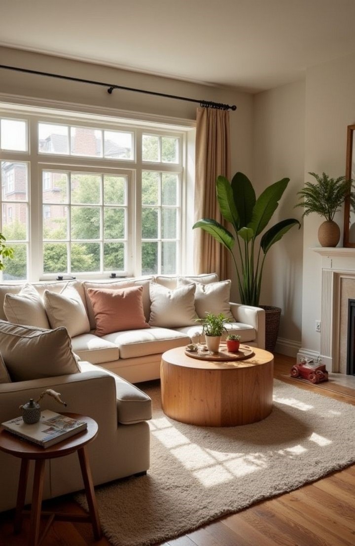 - Statement Mirror: Go bold with a large, decorative mirror above the sofa or fireplace to add elegance and functionality.