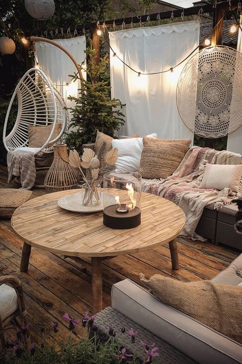 A fire pit or outdoor fireplace can be the centerpiece of your bohemian garden, offering warmth and a gathering place for friends and family.
