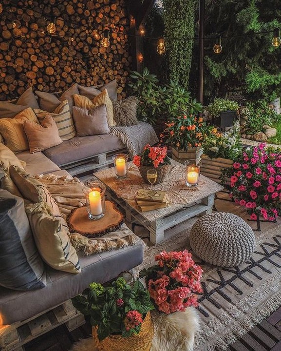 Dedicate a corner of your garden to yoga or meditation. Use colorful cushions and a small altar with candles and incense.