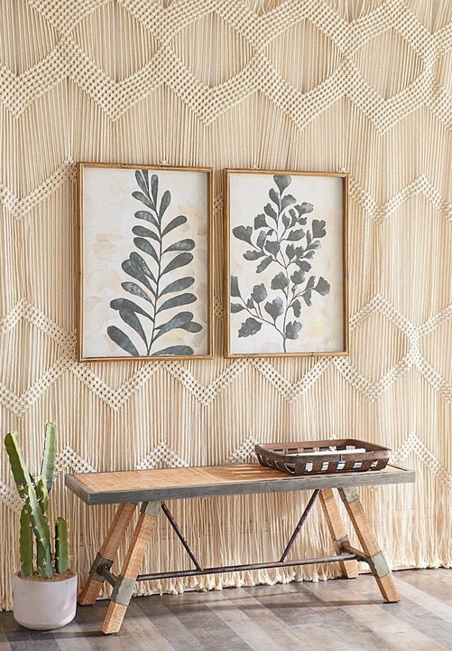 Hang macramé plant hangers, tapestries, and woven wall art to add texture and visual interest to your garden.