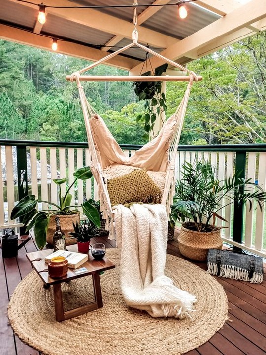 Hang hammocks, swings, or rattan egg chairs for relaxing in your garden. These provide a great spot for reading and daydreaming.
