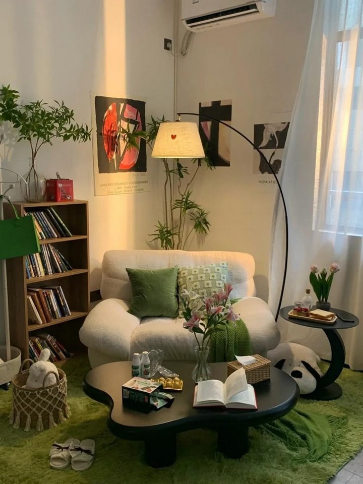 For book lovers, a reading nook is a must. Choose a quiet corner and pair a comfortable armchair or chaise lounge with a small side table for your coffee or tea. Add a bookshelf or floating shelves nearby to keep your favorite reads within arm’s reach.