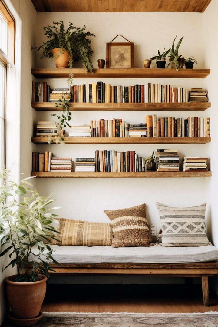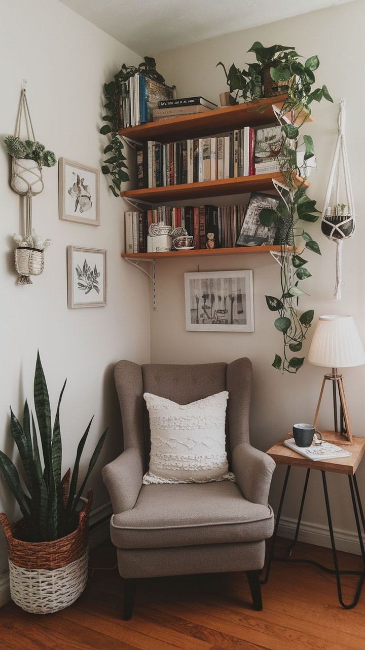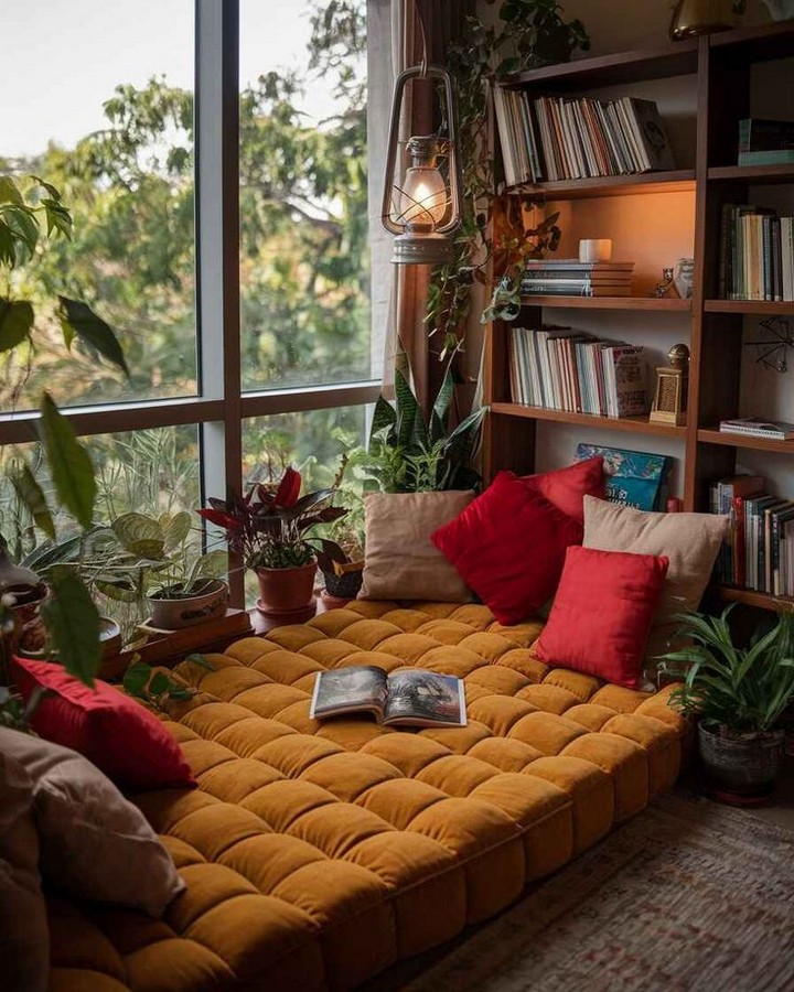 If you love vibrant colors and eclectic decor, a bohemian-style nook is perfect for you. Use a mix of patterned rugs, floor cushions, and macramé wall hangings to create a laid-back vibe. Incorporate plants like pothos or fiddle leaf figs to bring life and freshness to the space.