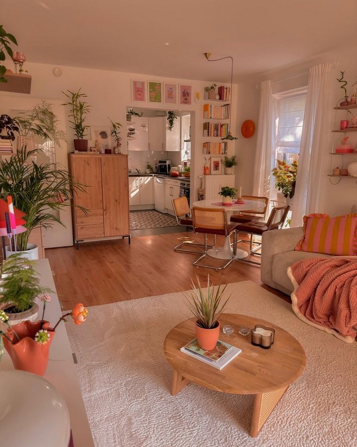 - Use vertical space with wall-mounted shelves or hanging plants.