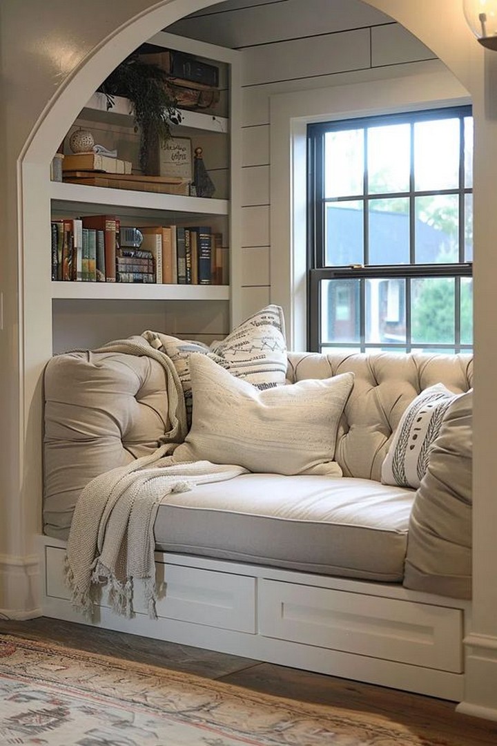 - A comfortable space to relax and unwind: Reading nooks create a cozy, comfortable space where you can escape from daily stresses and relax with a good book.