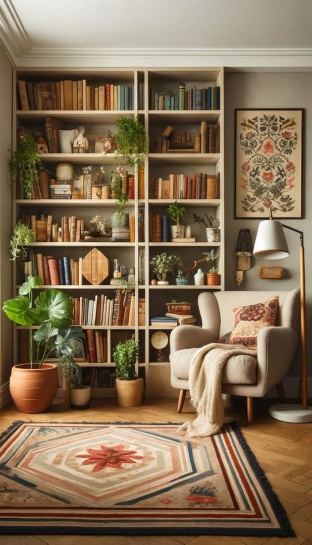 Create an eclectic reading nook with a mix of vintage and modern furniture