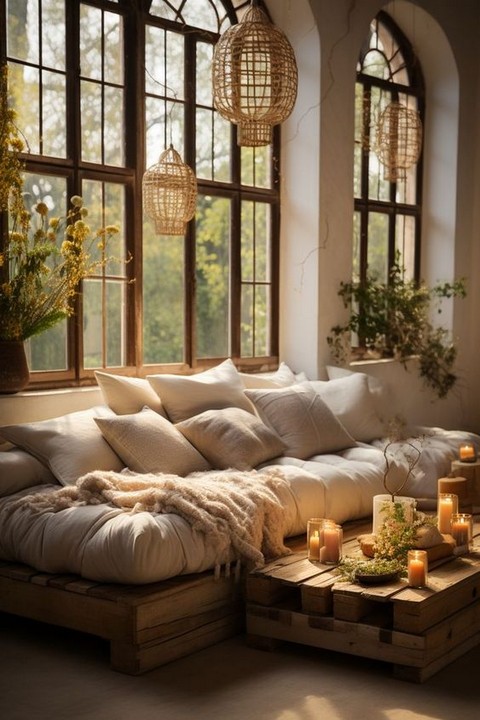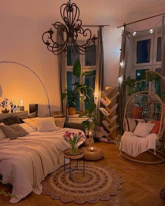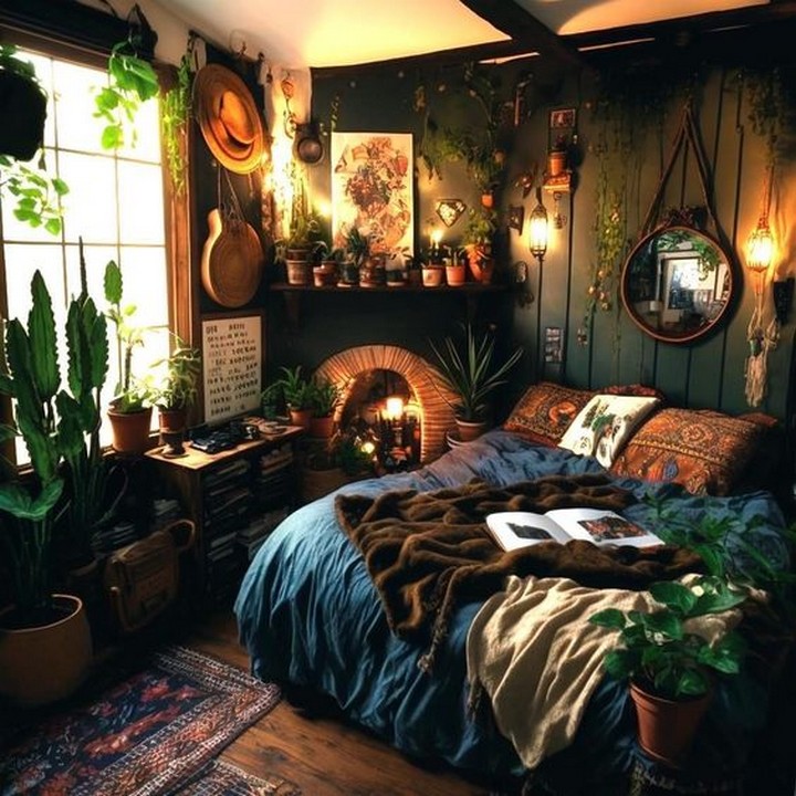 Dark Boho bedroom decor with candles and string lights can create a warm, inviting, and enchanting atmosphere. Dark Boho bedroom decor combines elements of Bohemian and dark, moody aesthetics to create a unique and cozy bedroom space. Here’s how to incorporate these elements into your bedroom: