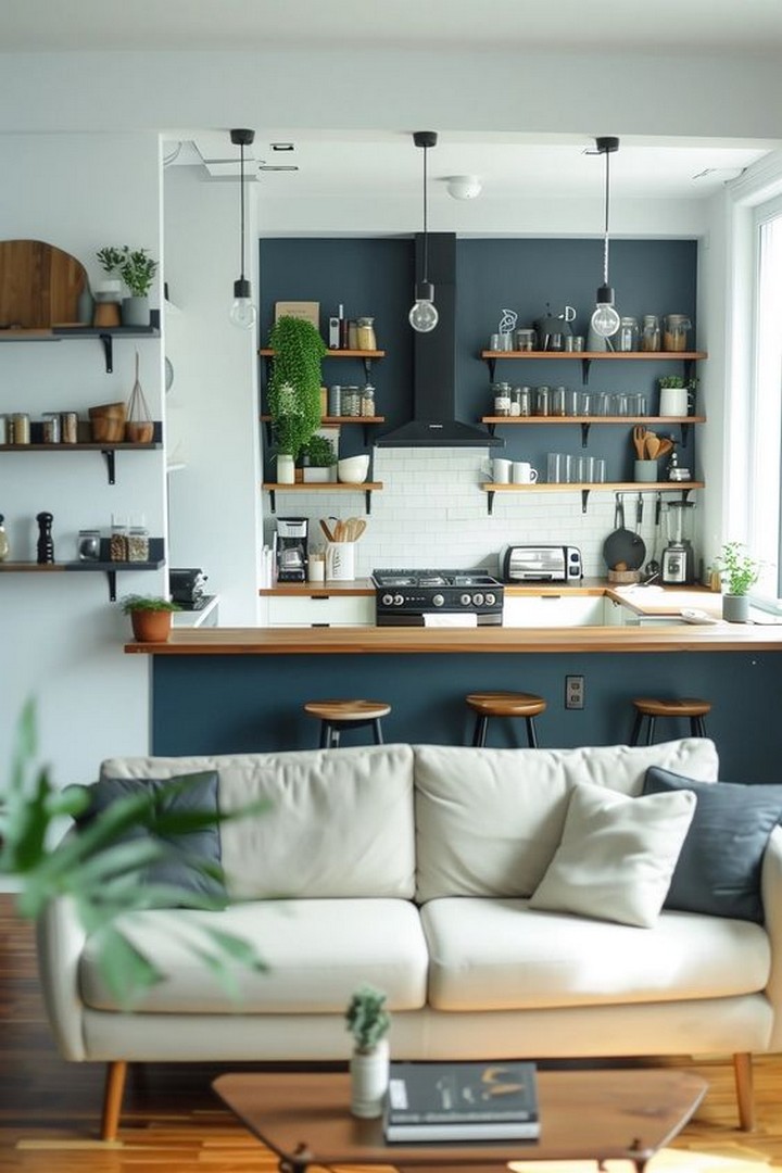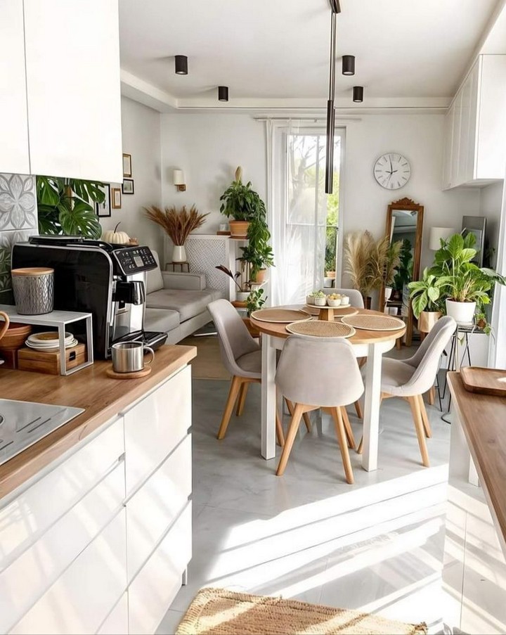 While functional considerations are essential in small open plan kitchen design, don’t forget to infuse your personal style and character into the space to create a warm and inviting atmosphere. Experiment with bold color accents, decorative lighting fixtures, textured finishes, or statement pieces of art to inject personality and visual interest into your kitchen area. Incorporate natural elements like indoor plants, herb gardens, or floral arrangements to bring life and vibrancy to the space. Mix and match textures, patterns, and materials to create a visually dynamic and welcoming small open plan kitchen that reflects your unique taste and lifestyle.