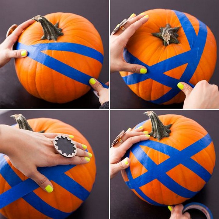 If you want to create crisp lines or sections, you can use painter’s tape. Apply the tape to the pumpkin before painting, and then remove it once the paint is dry to reveal clean lines.