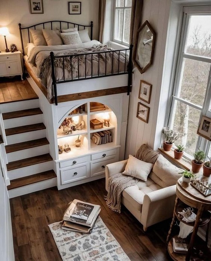 In a small living space, effective storage solutions are critical. When devising loft design ideas for tiny houses, explore innovative ways to integrate storage seamlessly into the loft area. From built-in wardrobes to under-bed drawers, every inch of the loft should be optimized to accommodate clothing, belongings, and everyday essentials.