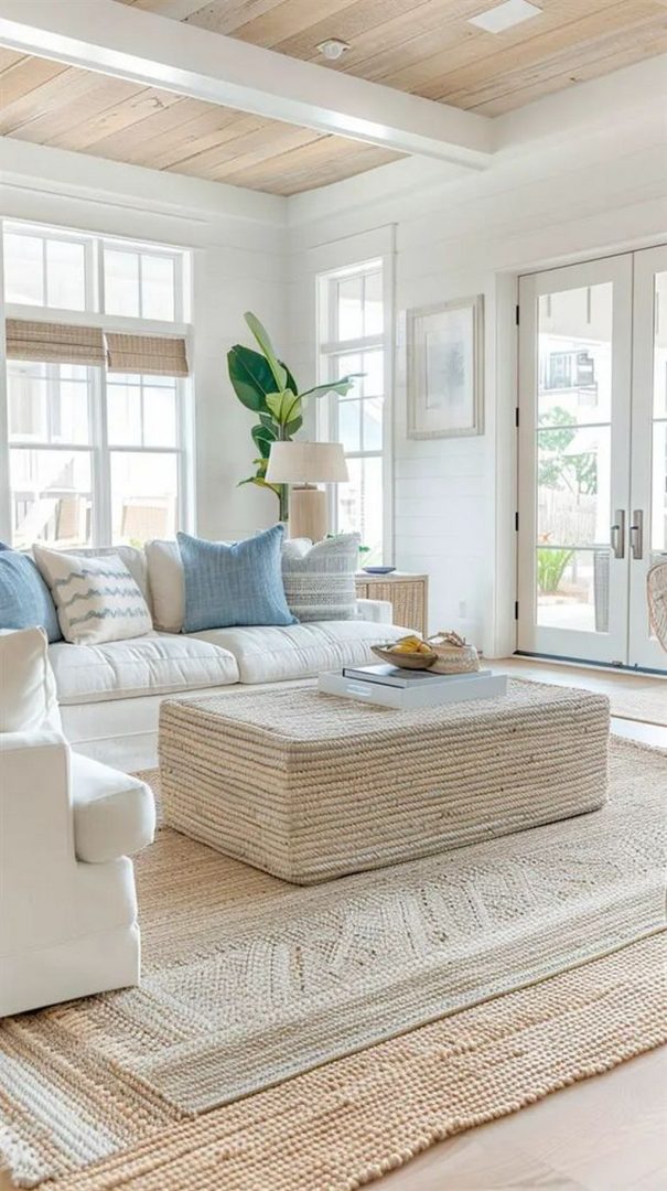 To add depth and character to your coastal-inspired space, incorporate natural textures like rattan, jute, wicker, and seagrass. These materials add warmth and tactile appeal to your decor, evoking the feeling of being enveloped in nature. Consider adding a woven jute rug, rattan furniture, or seagrass baskets to bring a touch of the coastal lifestyle into your home.