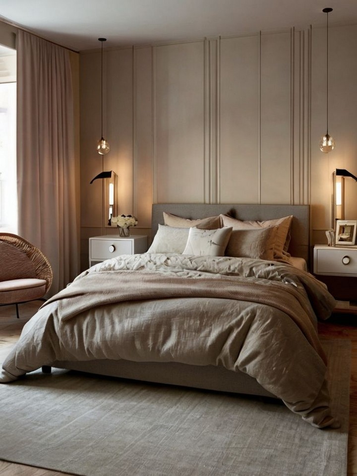 To create a cozy and inviting master bedroom, consider inspirations that incorporate warm and earthy tones, soft linens, and natural materials. A neutral color palette, paired with wooden furniture, layered textiles such as knitted throws and fluffy rugs, can contribute to a snug and welcoming atmosphere. Add personal touches with cozy reading nooks, a fireplace, or a seating area to create a space where you can unwind and escape into a peaceful cocoon.