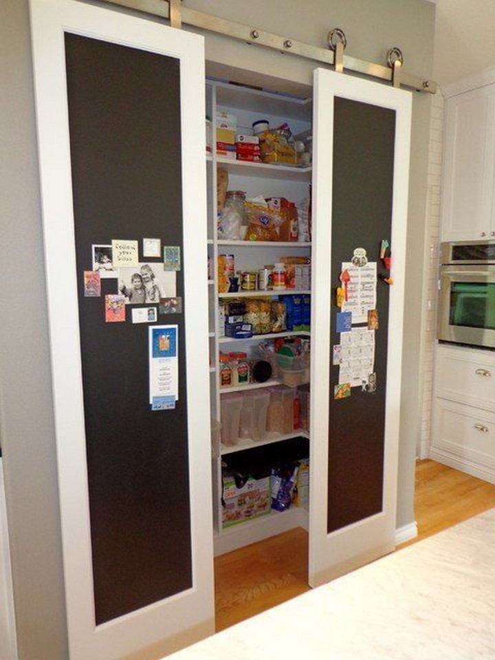 Add chalkboard or corkboard panels to the inside of your wall pantry doors. It’s a practical way to jot down shopping lists, recipes, or notes.