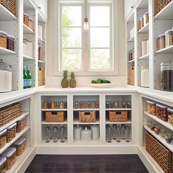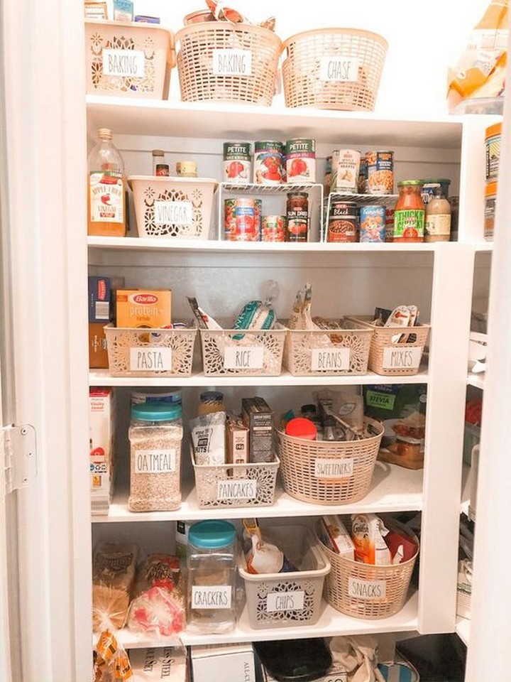 Use clear containers, baskets, and labels to keep your pantry items organized and easy to find. Consider using uniform containers for a cohesive look.