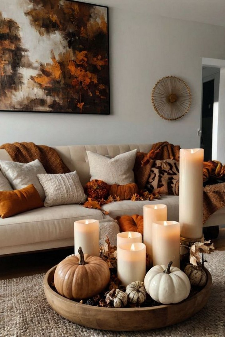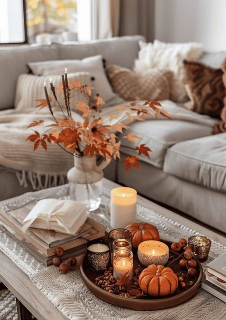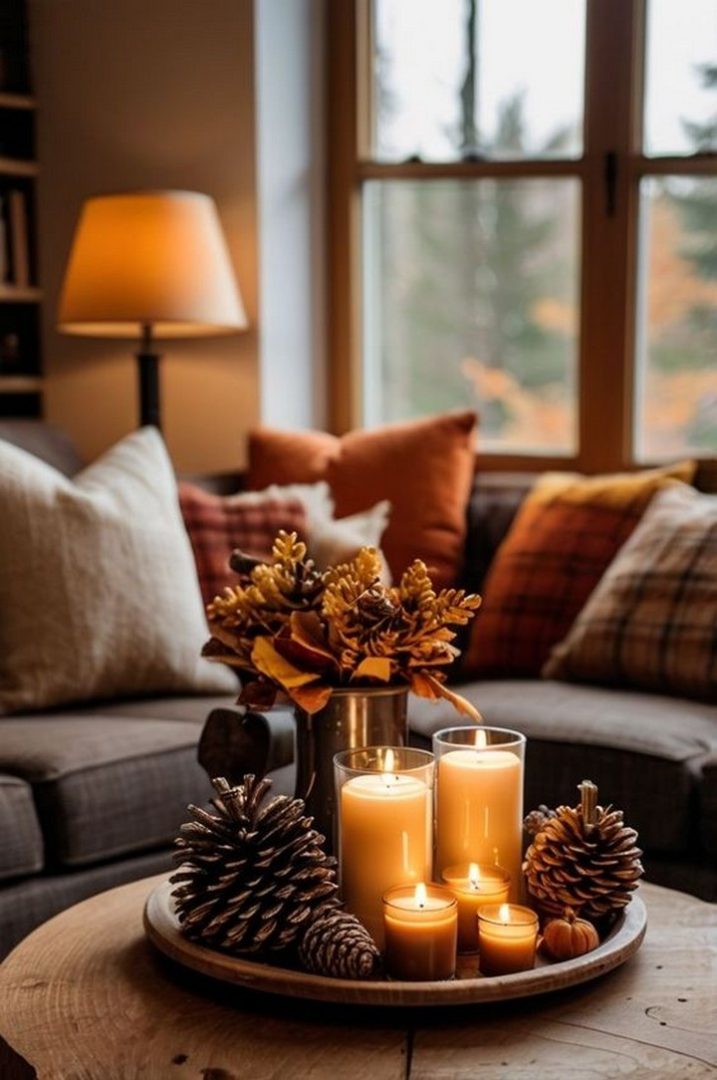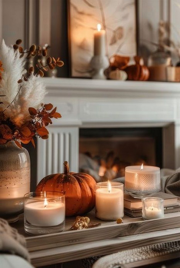 As the days grow shorter, creating a warm and inviting ambiance with candlelight can add a cozy and intimate feel to your home. Arrange an assortment of candles in different sizes and heights on your coffee table, mantel, or dining table to create a soothing glow that enhances the atmosphere of your living spaces. Opt for scents like pumpkin spice, apple cinnamon, or warm vanilla to add a layer of sensory delight to your fall decor.