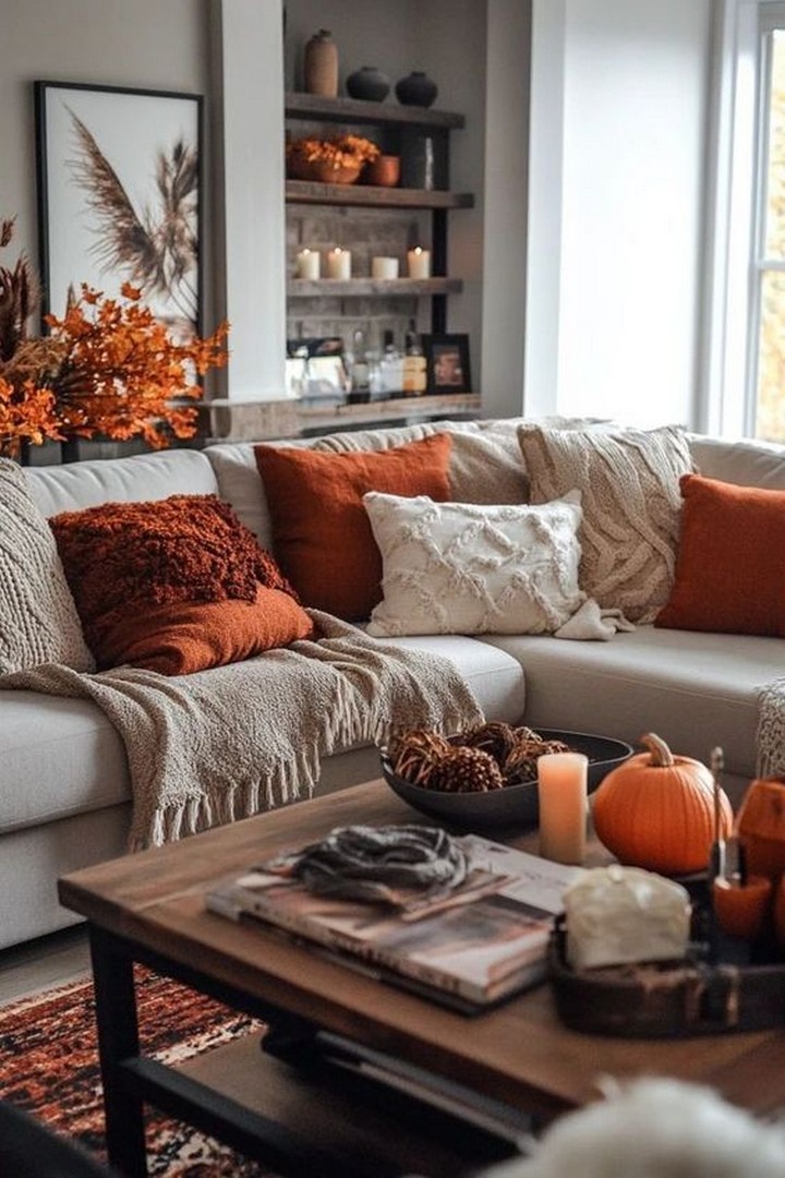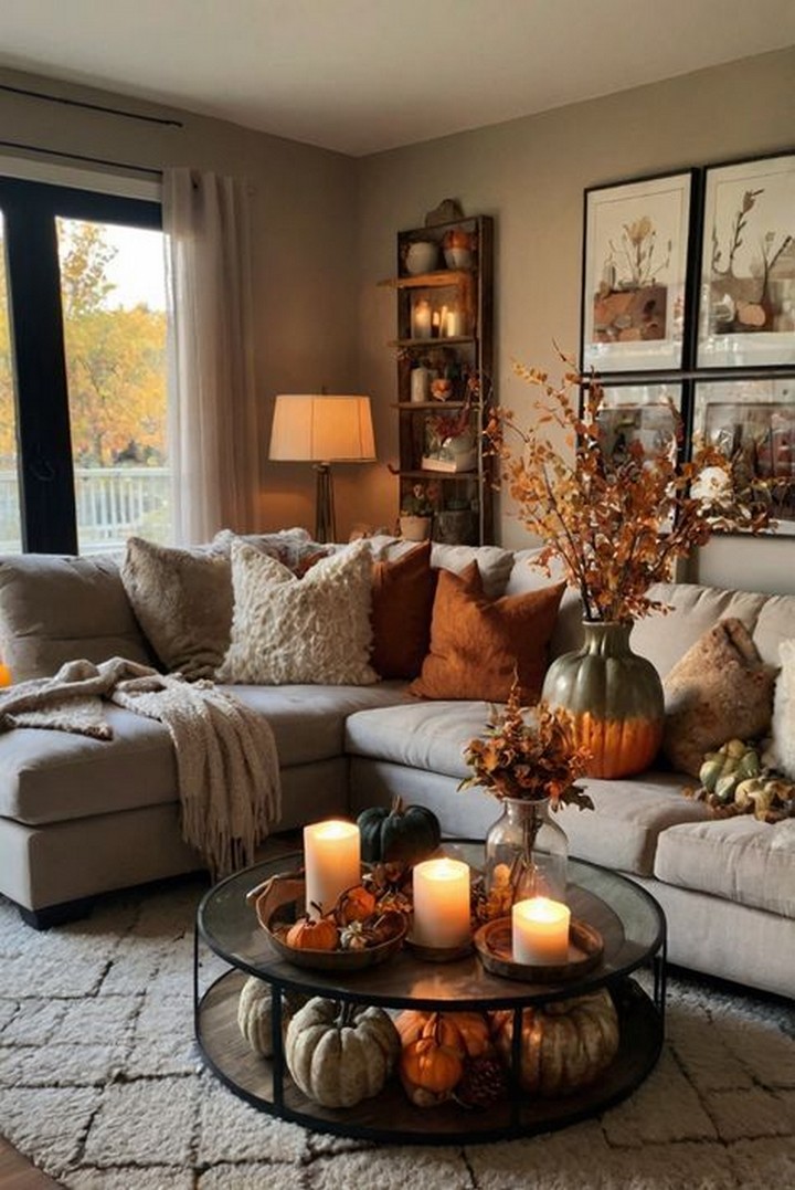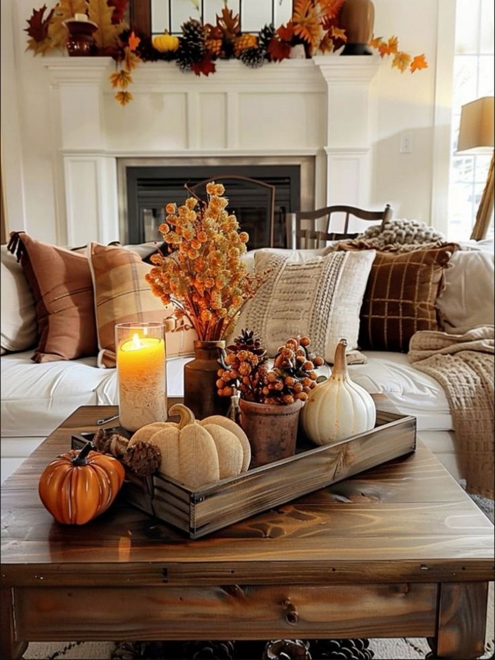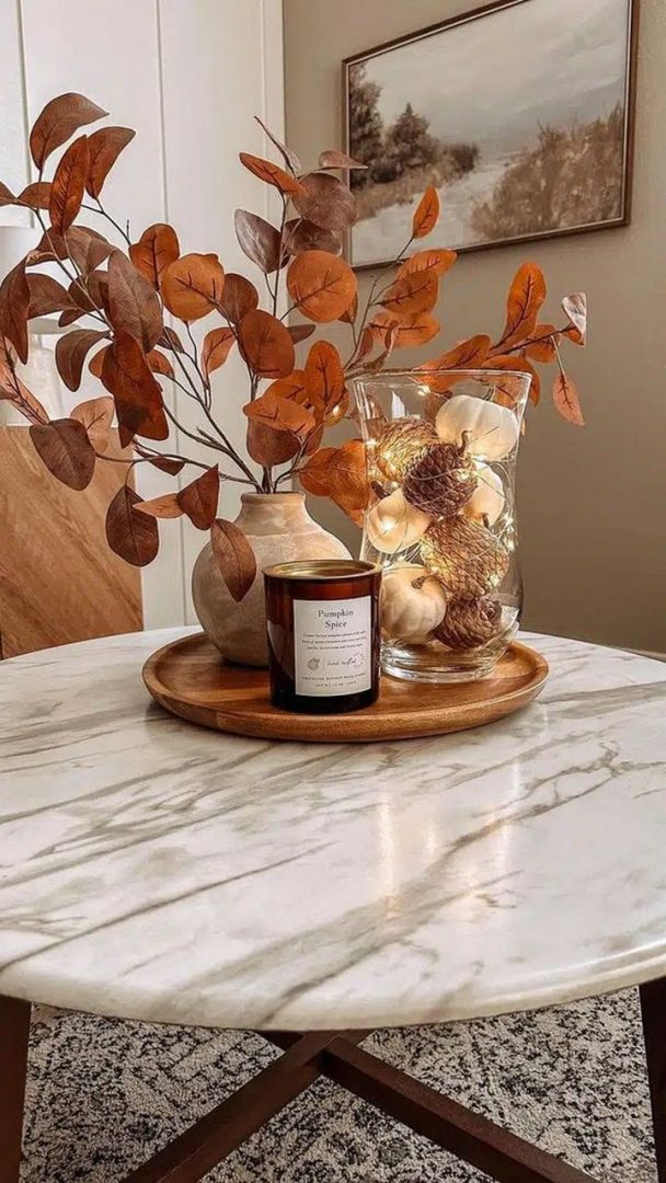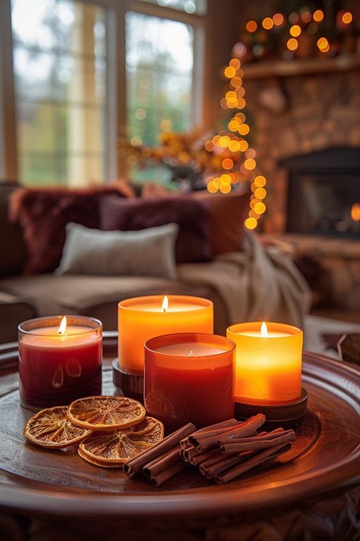 As the days grow shorter, creating a warm and inviting ambiance with candlelight can add a cozy and intimate feel to your home. Arrange an assortment of candles in different sizes and heights on your coffee table, mantel, or dining table to create a soothing glow that enhances the atmosphere of your living spaces. Opt for scents like pumpkin spice, apple cinnamon, or warm vanilla to add a layer of sensory delight to your fall decor.