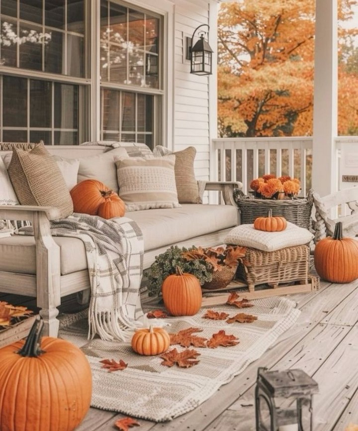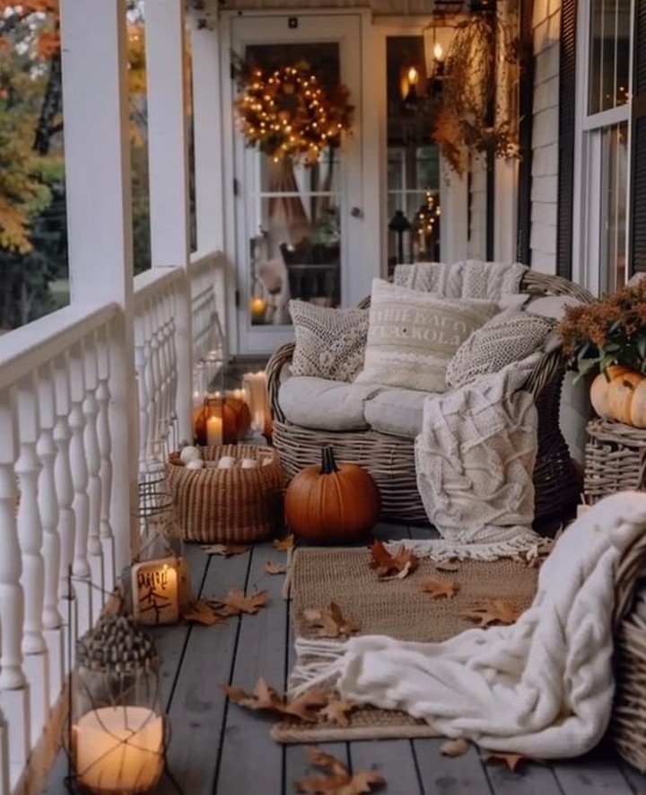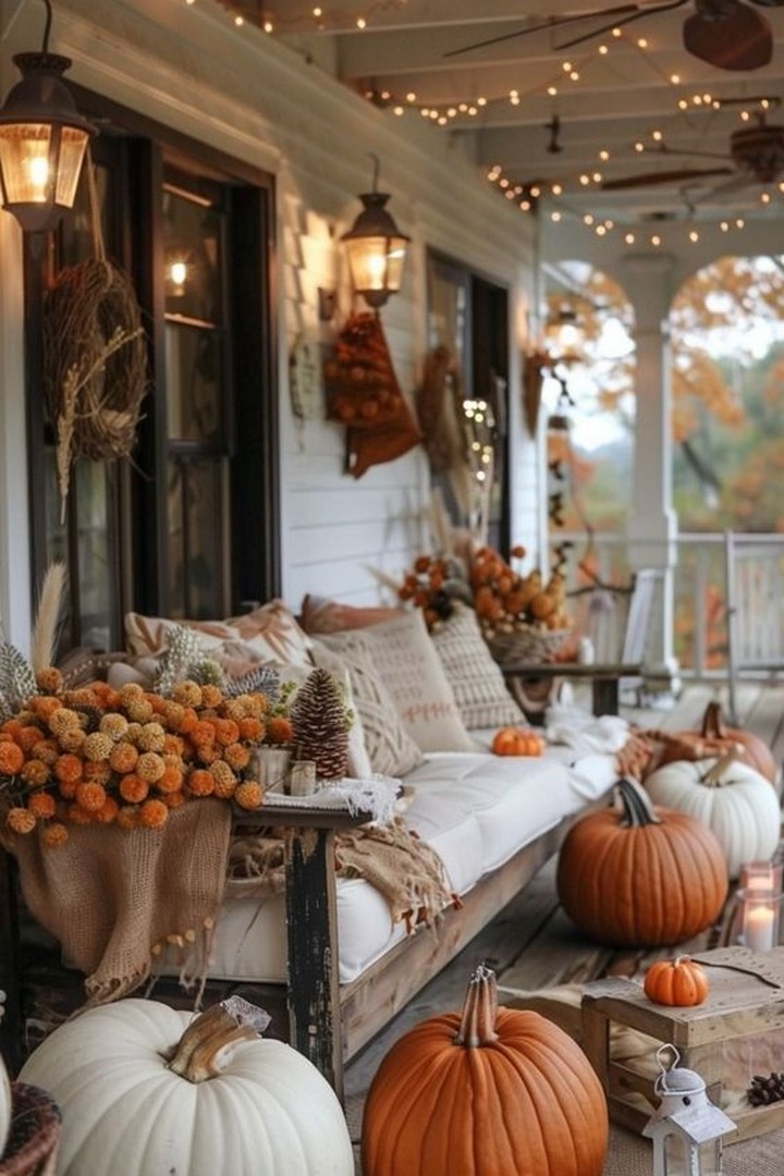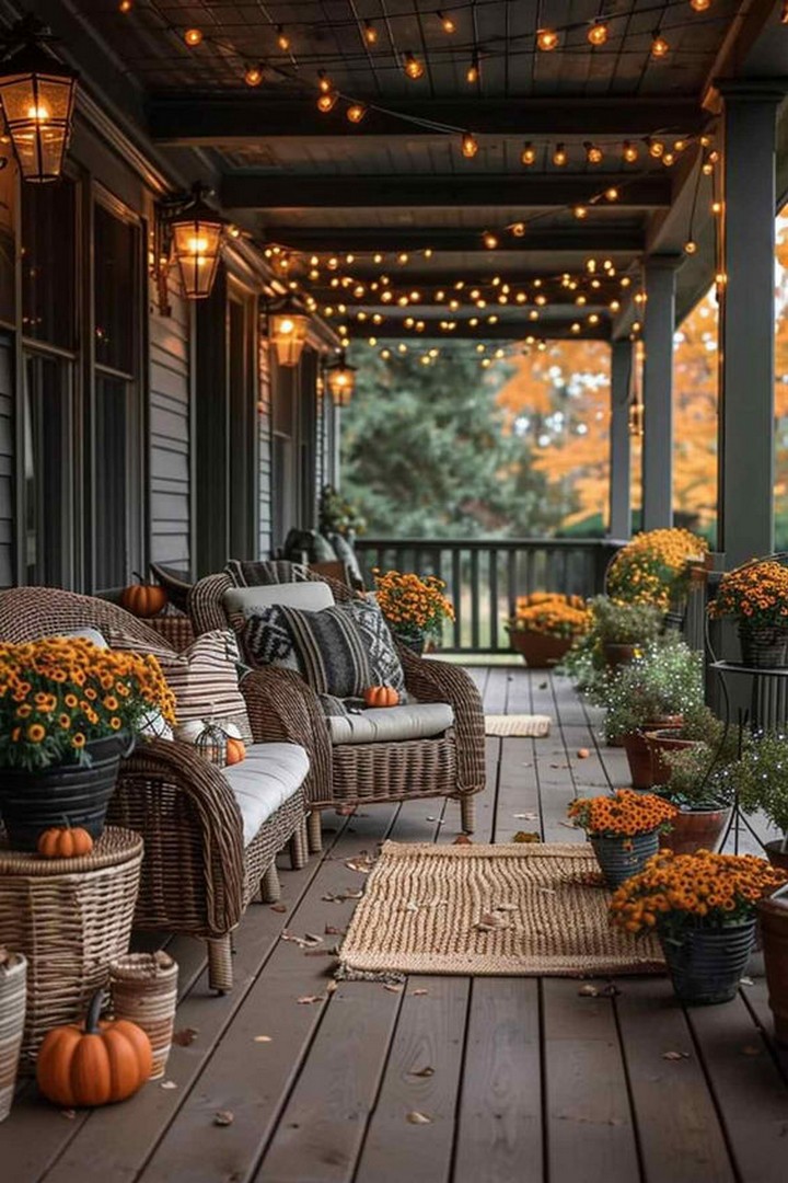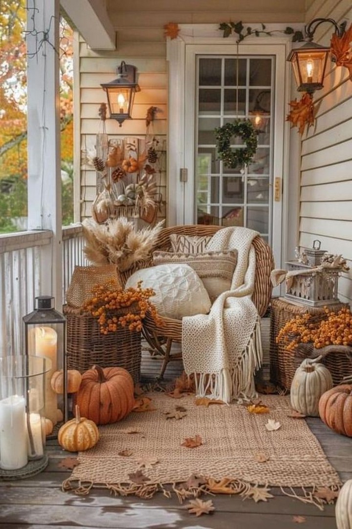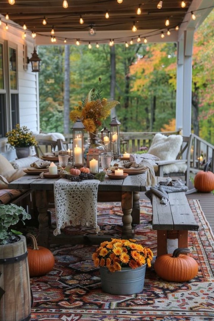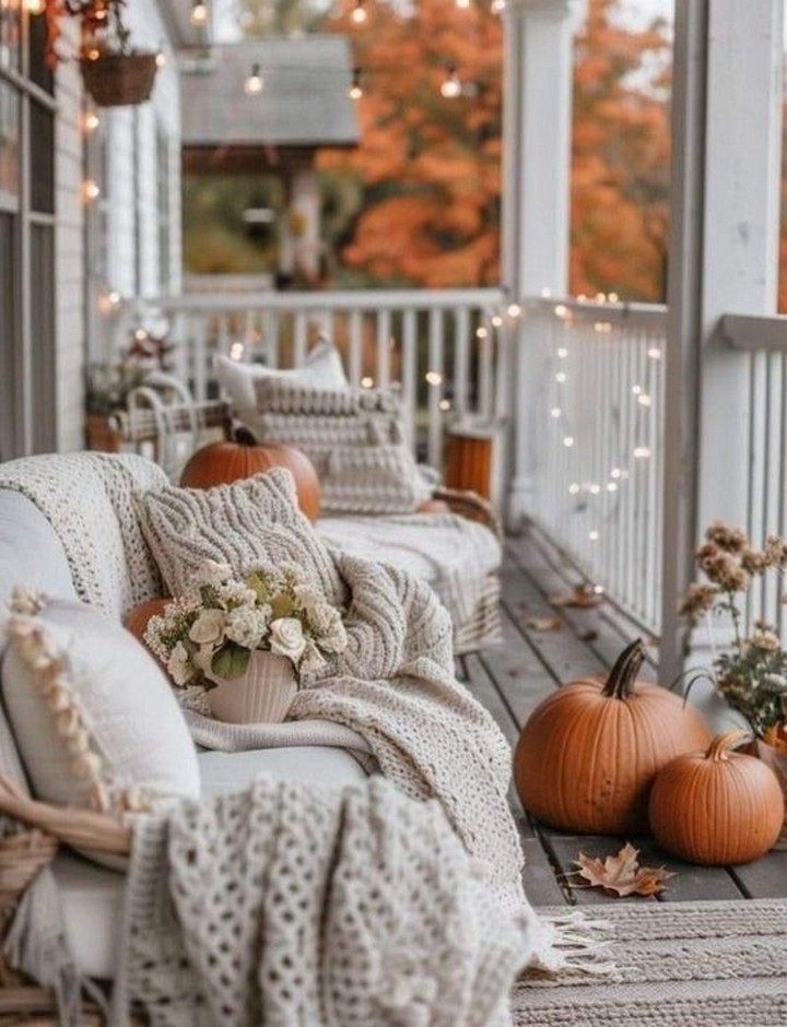 Don’t forget to extend your fall decor to your outdoor spaces to create a seamless transition from the indoors to the outdoors. Decorate your front porch with pumpkins, lanterns, and fall wreaths to greet guests with a warm and inviting welcome. Adorn your outdoor seating areas with cozy blankets, throw pillows, and string lights to create a cozy ambiance that encourages you to soak in the beauty of the season.