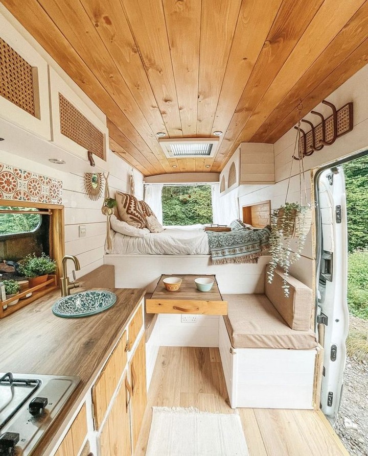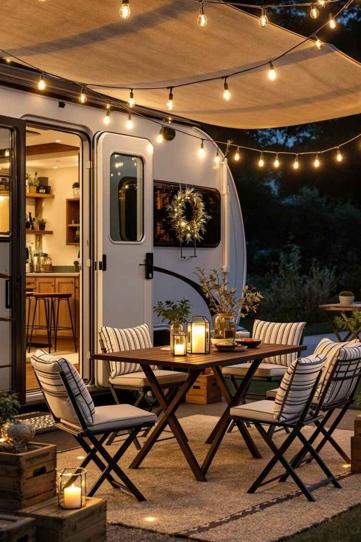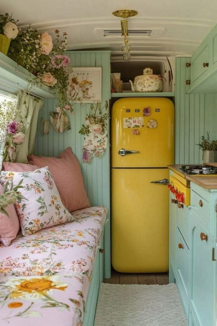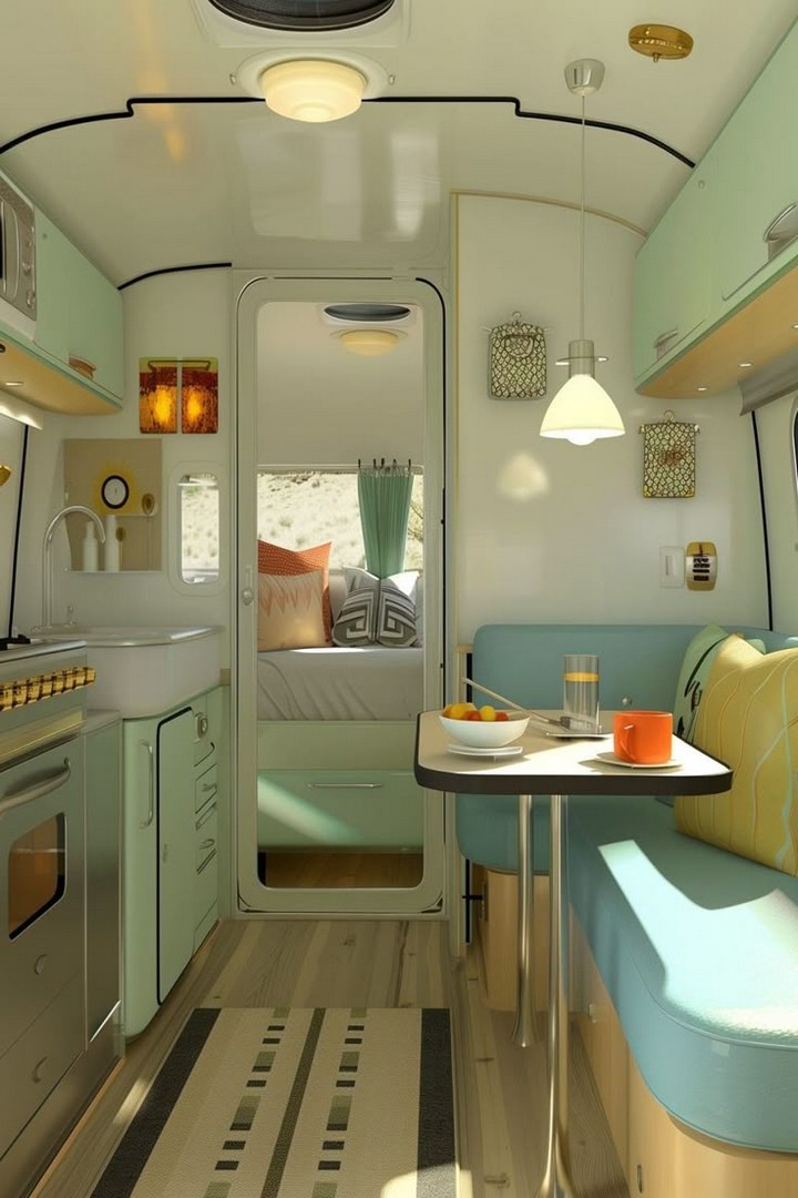 - Example 2: A vintage travel trailer with a bohemian vibe and vibrant decor.