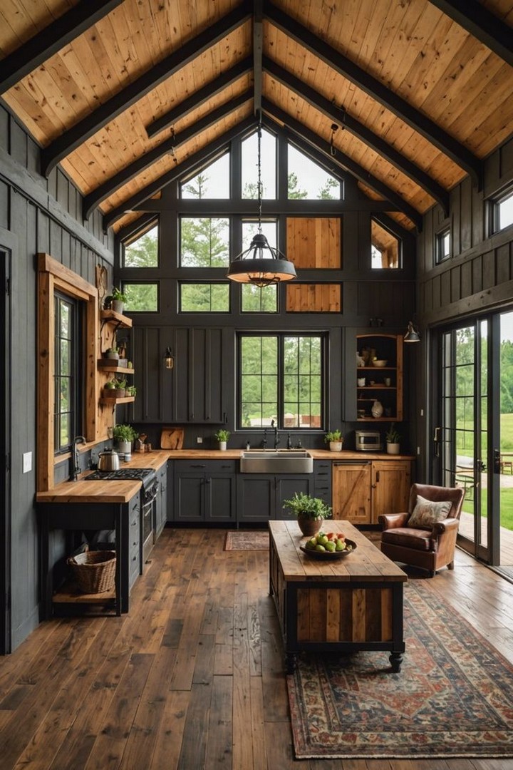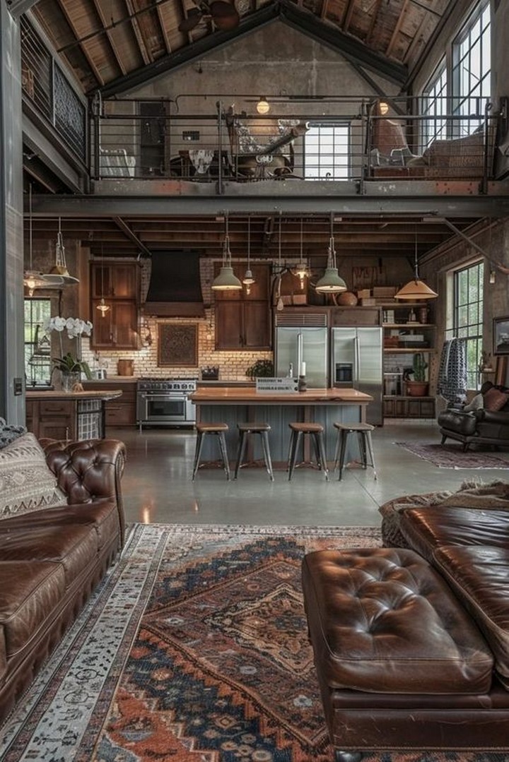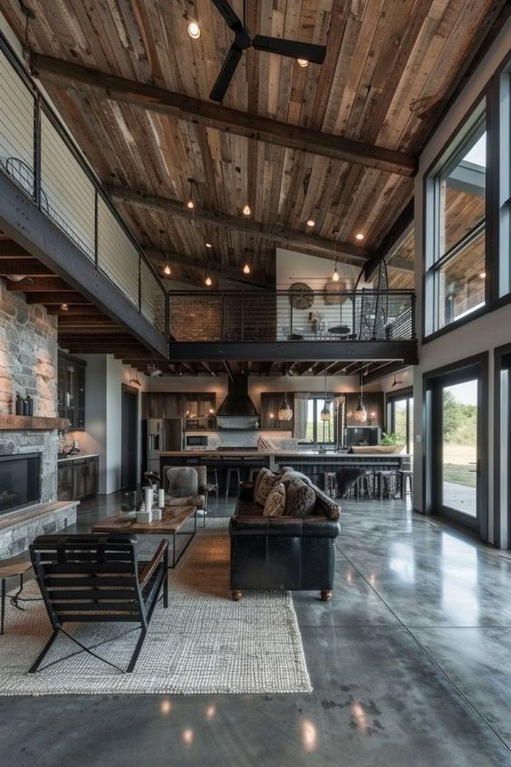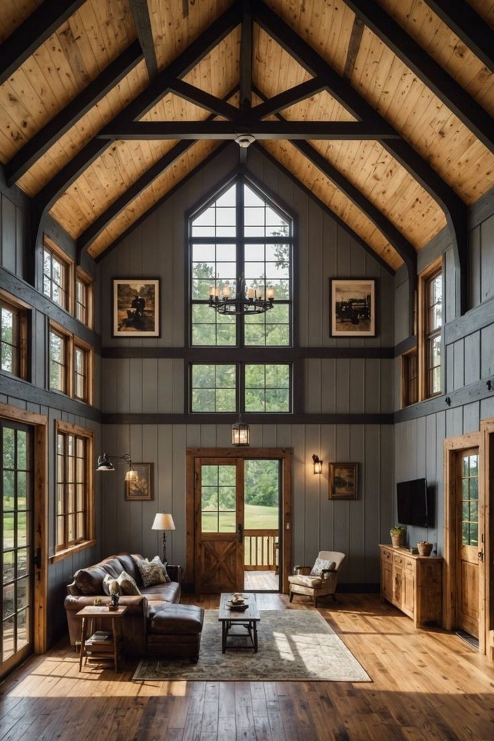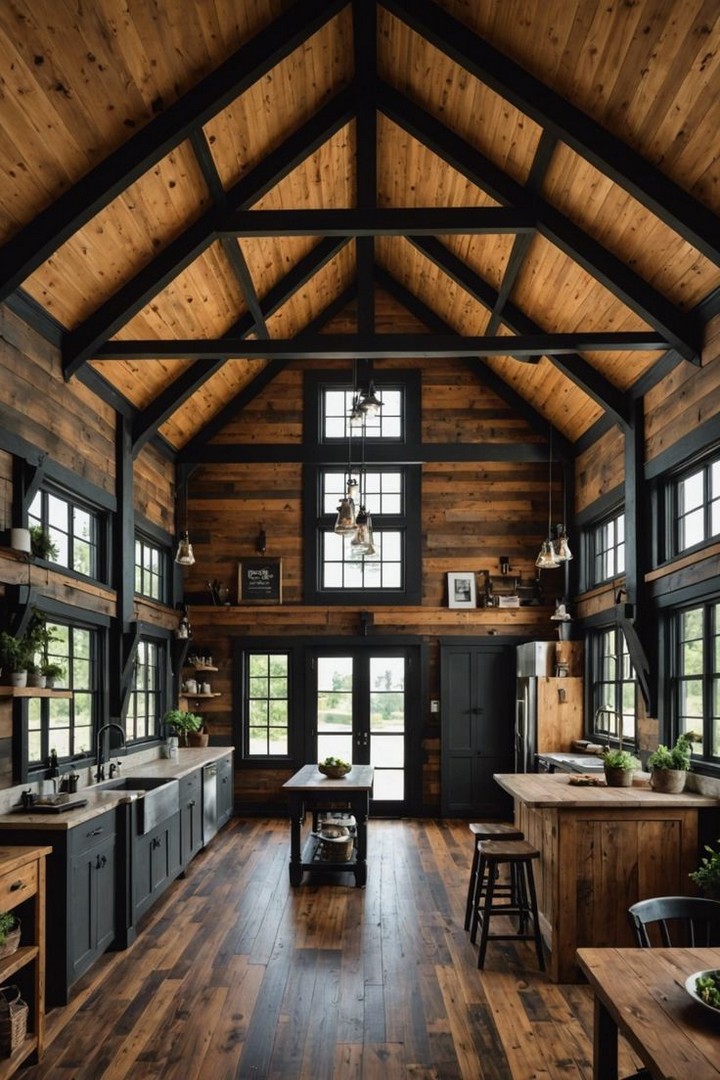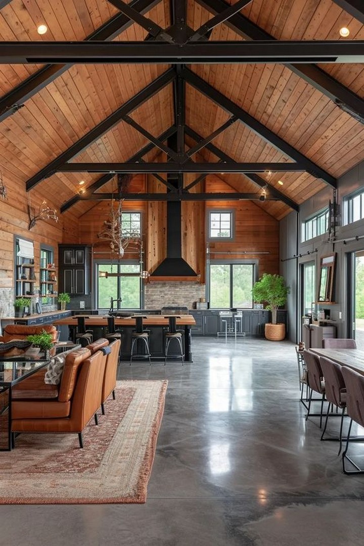 Blend farmhouse elements with industrial accents to create an interesting and contemporary twist. Incorporate metal finishes, exposed pipes, or repurposed industrial furniture pieces to add a unique edge to your farmhouse barndominium.