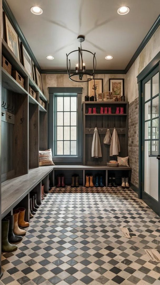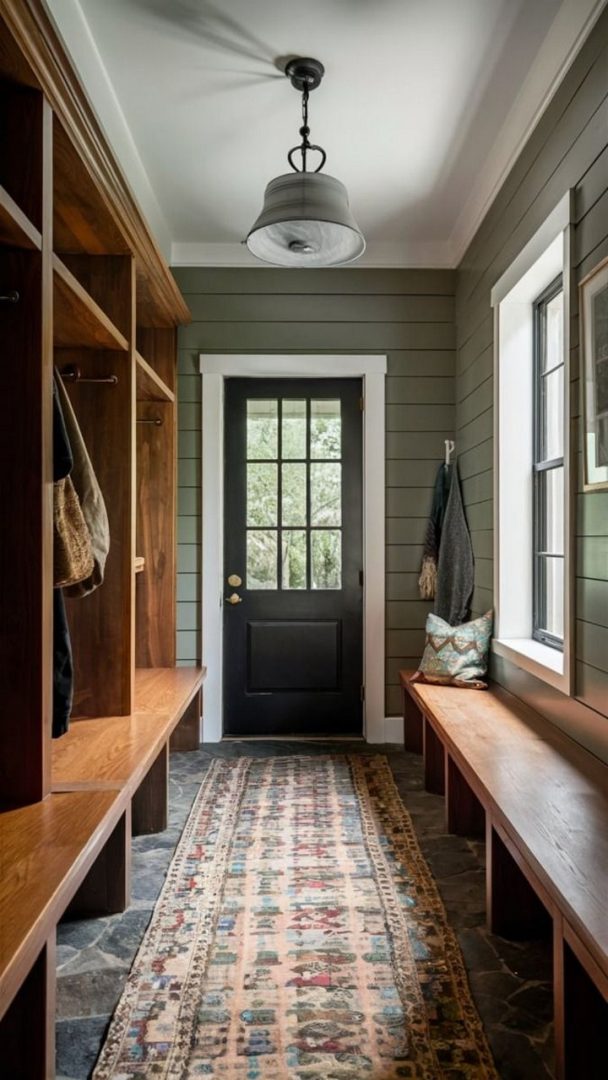 Include a functional and stylish mudroom with built-in cubbies, hooks, and a farmhouse-inspired bench. This will provide a practical space for storing coats, shoes, and other outdoor gear while maintaining the farmhouse aesthetic.