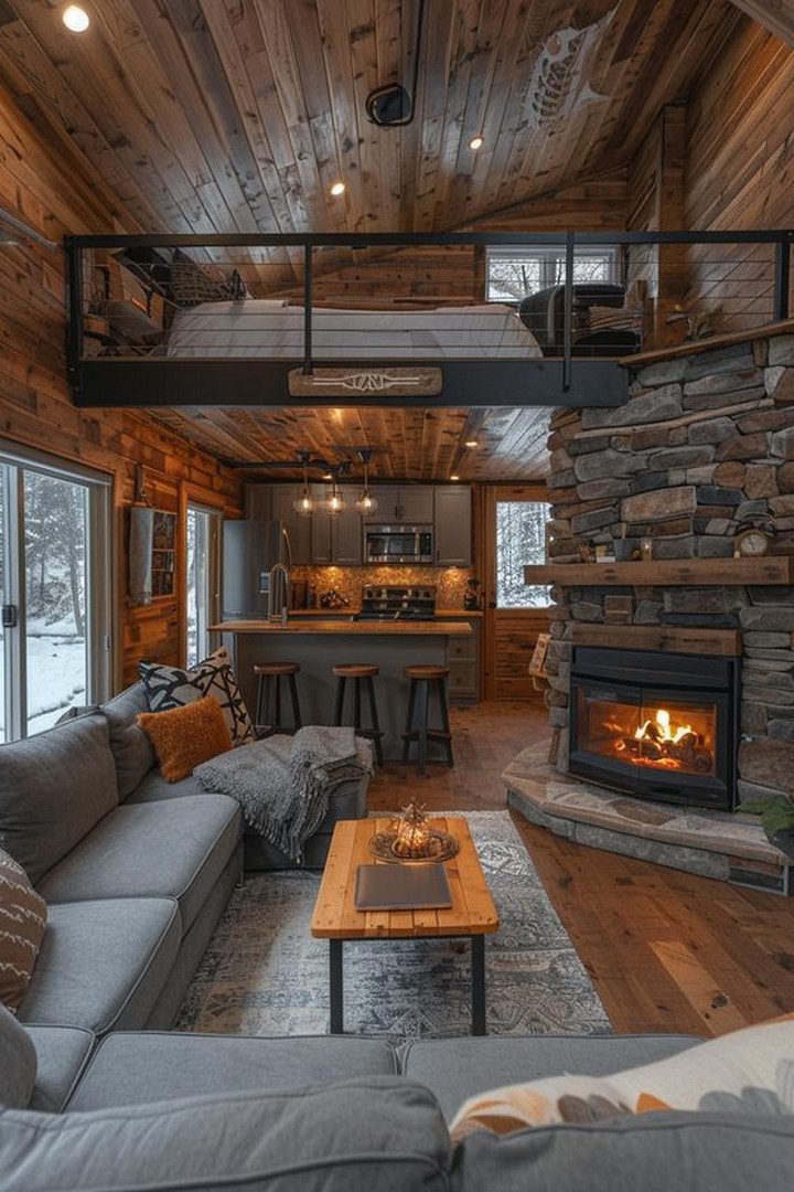 Install a rustic fireplace as a focal point in your living area. Whether it’s a traditional wood-burning fireplace or a gas fireplace with a stone surround, it will not only provide warmth but also enhance the farmhouse aesthetic.