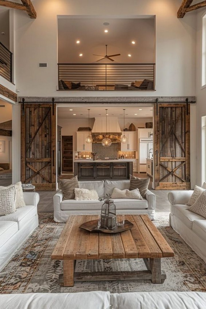 Swap traditional doors with sliding barn doors for an authentic farmhouse touch. These can be used for interior doors, closets, or even as a decorative element mounted on a wall.