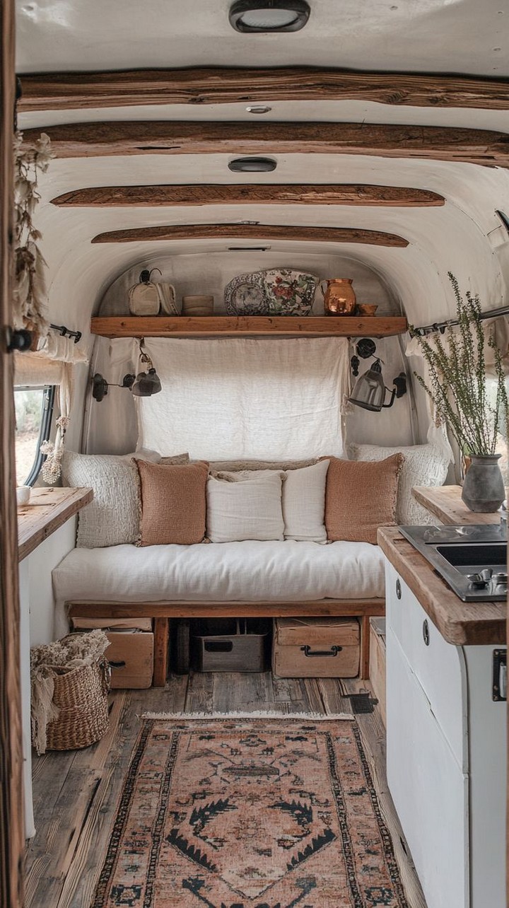 Small potted plants and fresh herb gardens bring a touch of nature into your Airstream. Consider rosemary, basil, and lavender for a fragrant and functional addition to your decor.