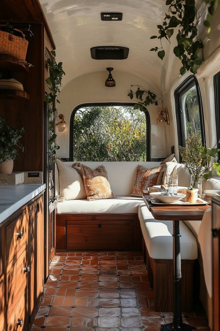 A rustic Italian theme thrives on warm, earthy tones such as terracotta, ochre, olive green, and deep brown. These colors mimic the hues of sun-drenched Italian villages and create a cozy ambiance inside your Airstream.