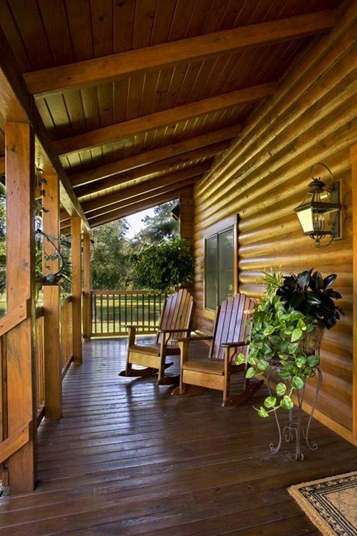 Use reclaimed wood, stone, and a rustic color palette to create a cozy, cabin-like atmosphere on your second-floor porch.