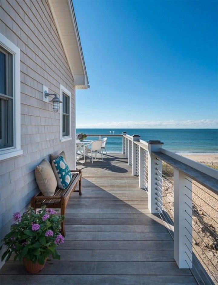 For a coastal look, choose a white or light-colored porch with nautical-inspired decor. Incorporate blue and white accents, rope railings, and comfortable lounge chairs.
