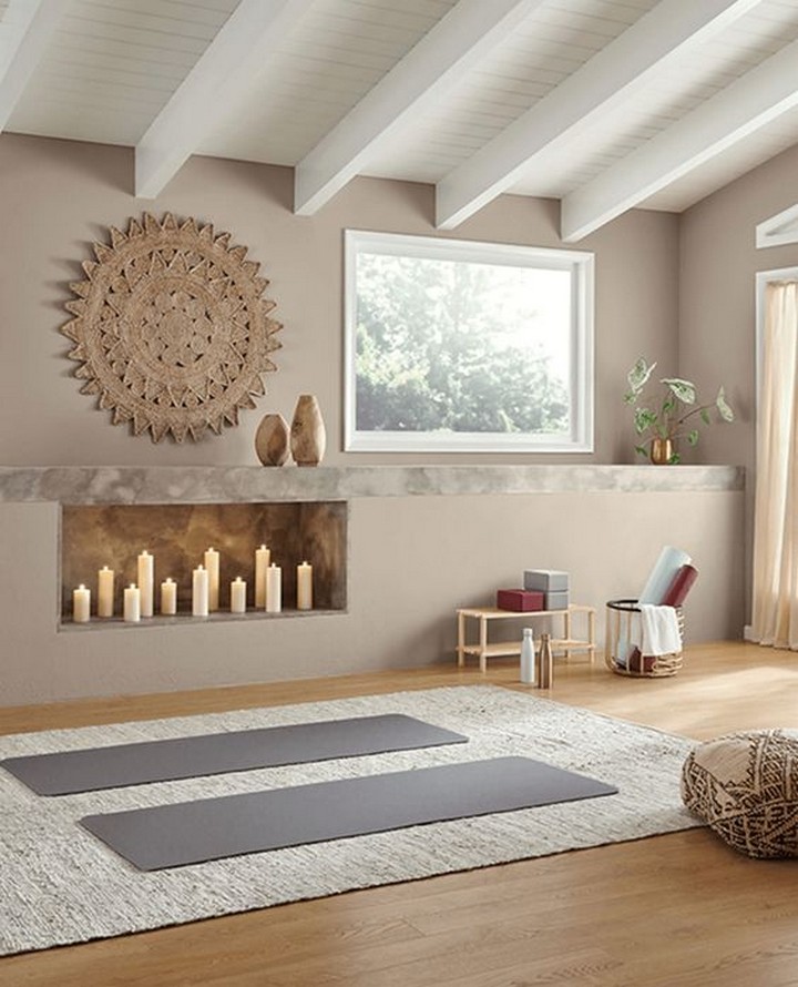 Stick to a neutral color palette with earthy tones like grays, whites, and warm browns. This allows the architectural features and decor to shine.