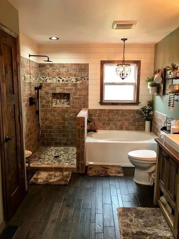 Create a rustic bathroom with a clawfoot tub, subway tiles, and wooden vanities. Incorporate vintage fixtures for added character.