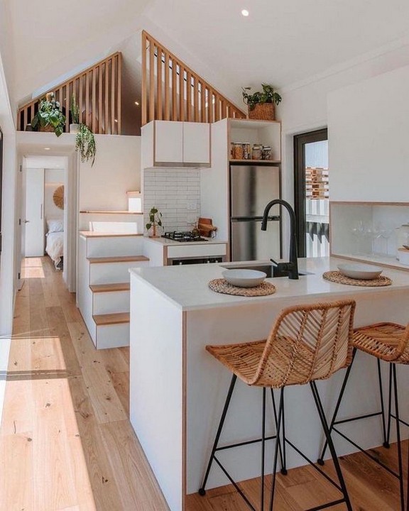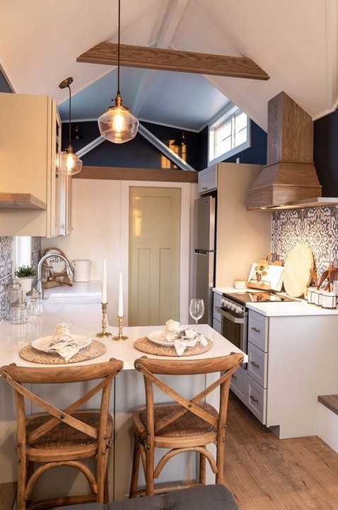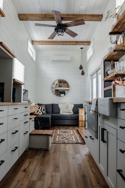 Embrace the open concept design of the barn with a spacious living, dining, and kitchen area. This layout maximizes the sense of space in a small area.