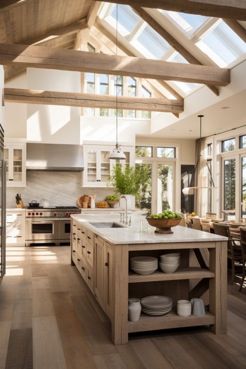 Bring in ample natural light by installing large windows and skylights. They make the space feel more open and inviting.