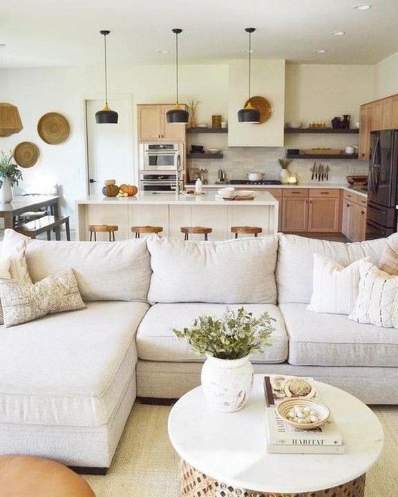 If possible, consider an open floor plan that combines the living room with the dining or kitchen area to maximize space.