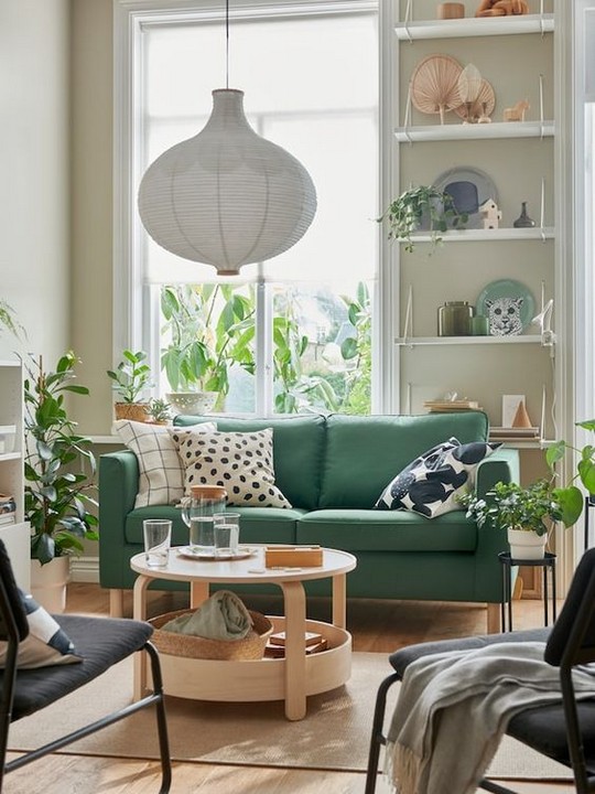 Bring in some greenery with indoor plants. Consider vertical gardens or tall potted plants to save floor space.