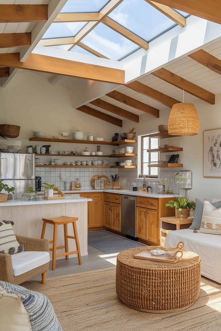 Stylish storage bins, baskets, or boxes can be placed on open shelves or under tables. Not only do they add a chic touch to your decor, but they also keep clutter out of sight.