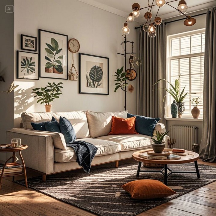 Instead of cluttering your walls with too many frames, curate a few high-quality pieces of artwork that fit the theme of your apartment. One large statement piece can often make a bigger impact than several smaller ones.