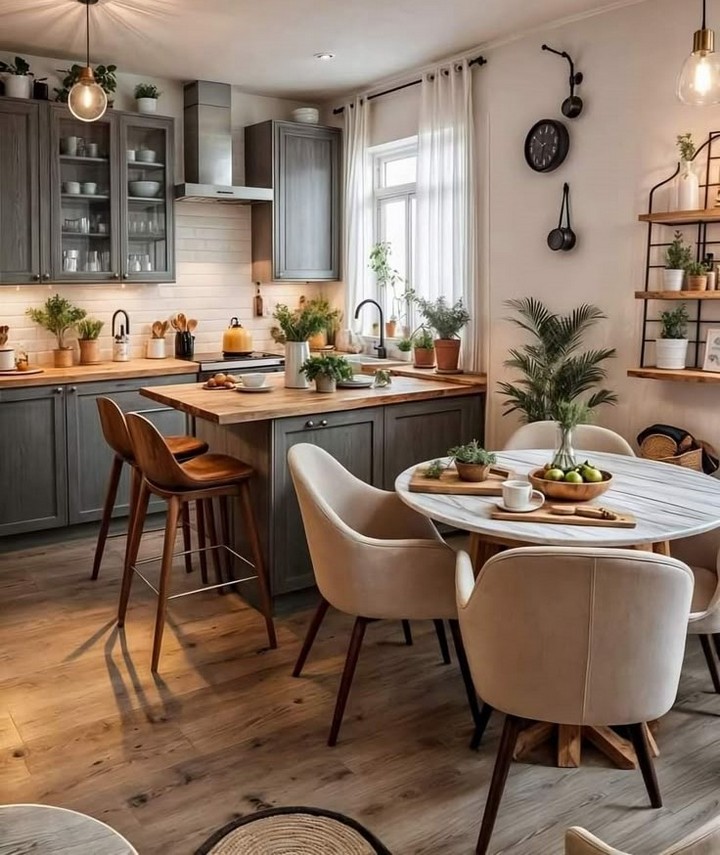 An extendable dining table is a fantastic choice for small apartments because it offers flexibility without compromising on space. It allows you to comfortably seat two for daily meals but expands when you have guests over.