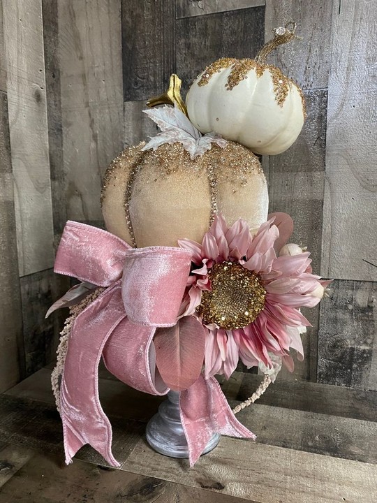 Adorn your pumpkin with colorful ribbons and bows for a festive and playful look.