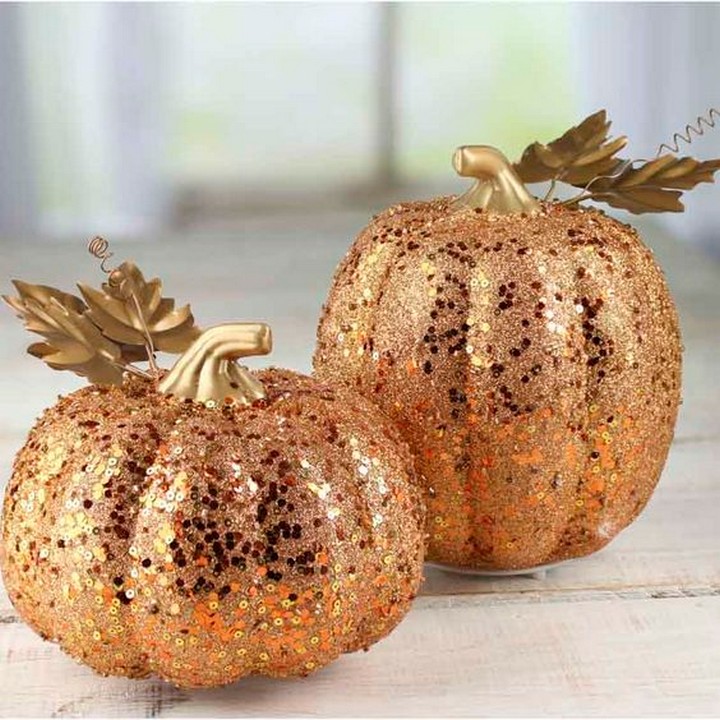 - Coat your pumpkin in adhesive, then sprinkle with glitter for a glamorous and sparkly look.