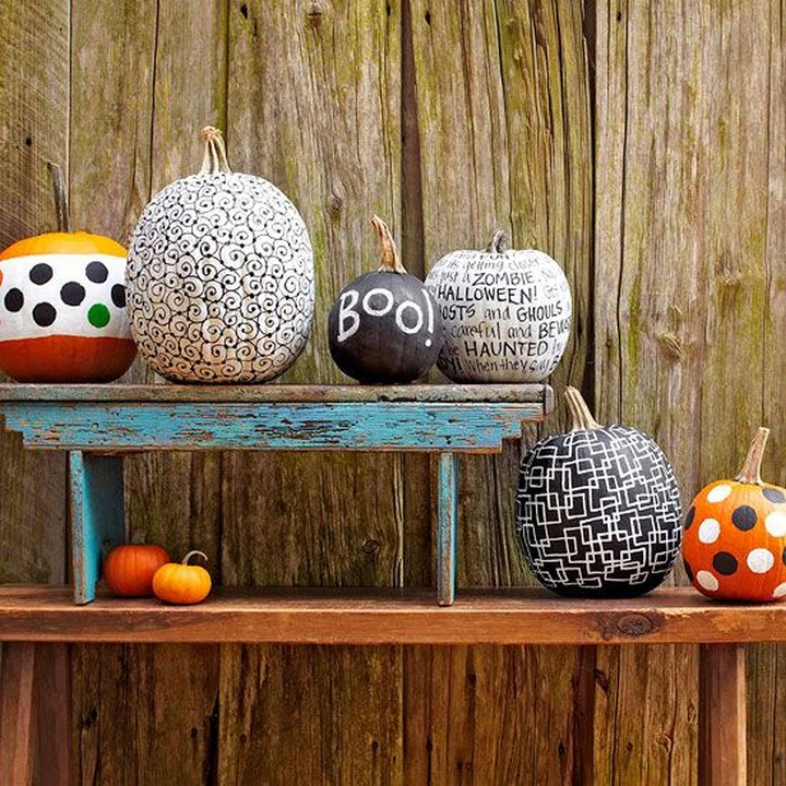 Use permanent markers (Sharpies) to draw intricate designs, patterns, or even illustrations on your pumpkins.