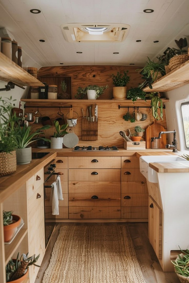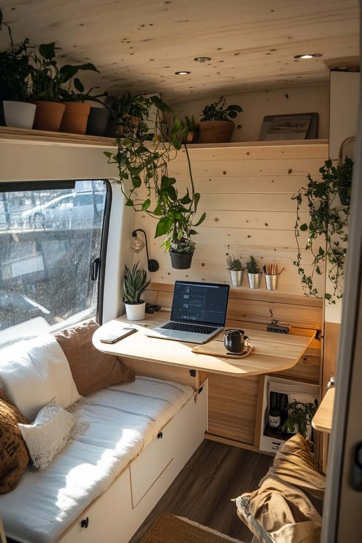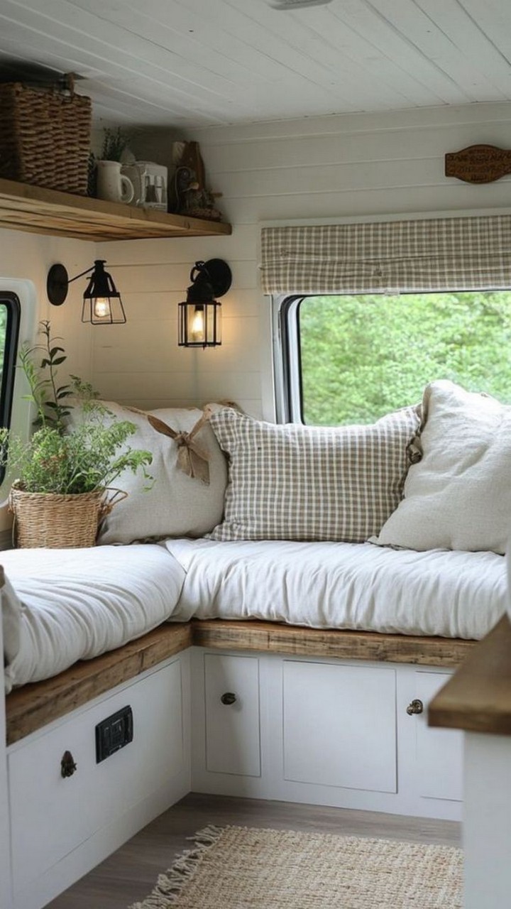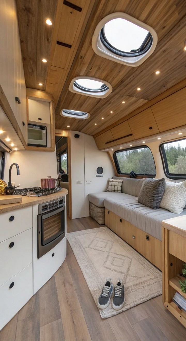 - Reclaimed Wood: Use reclaimed wood for furniture, shelving, and paneling to add rustic charm and sustainability to your van.