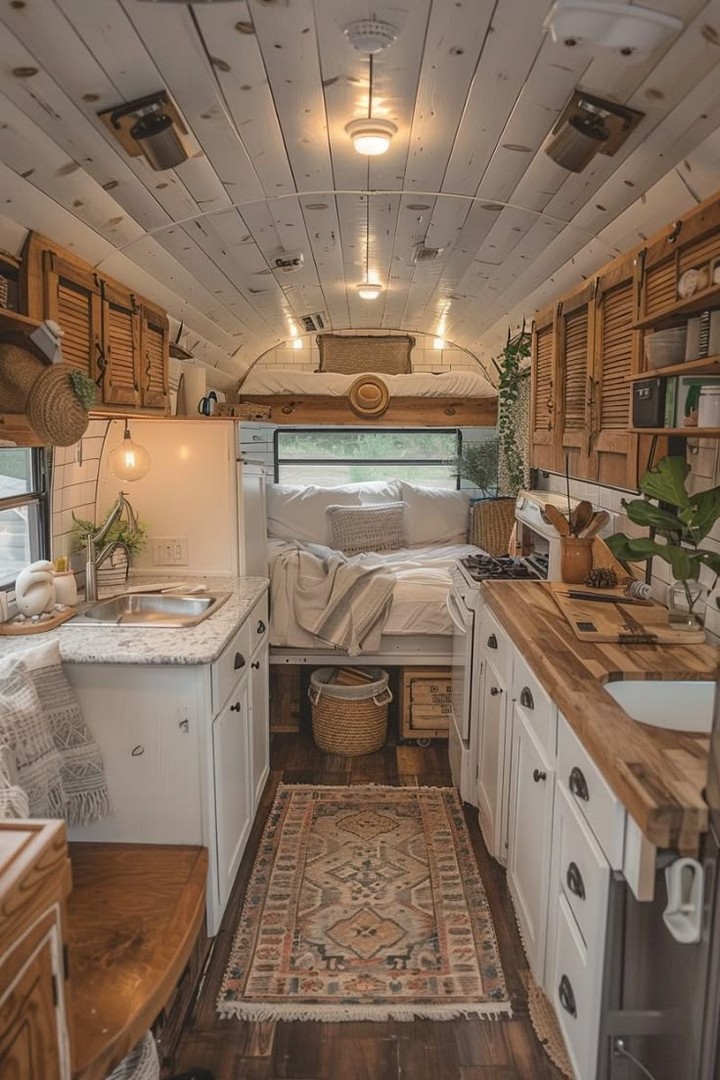 - Open Floor Plan: Keep the interior open and airy with minimal furniture. A fixed bed with under-bed storage and a small kitchenette are often the main features.
