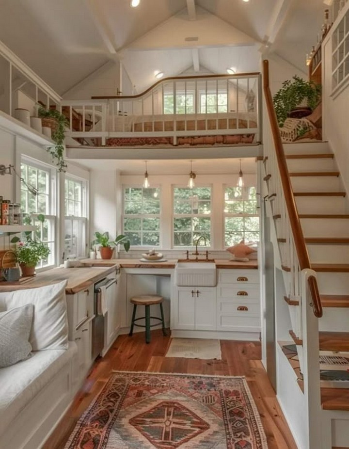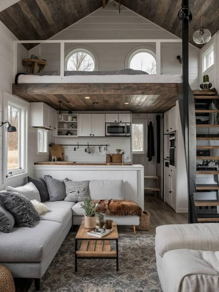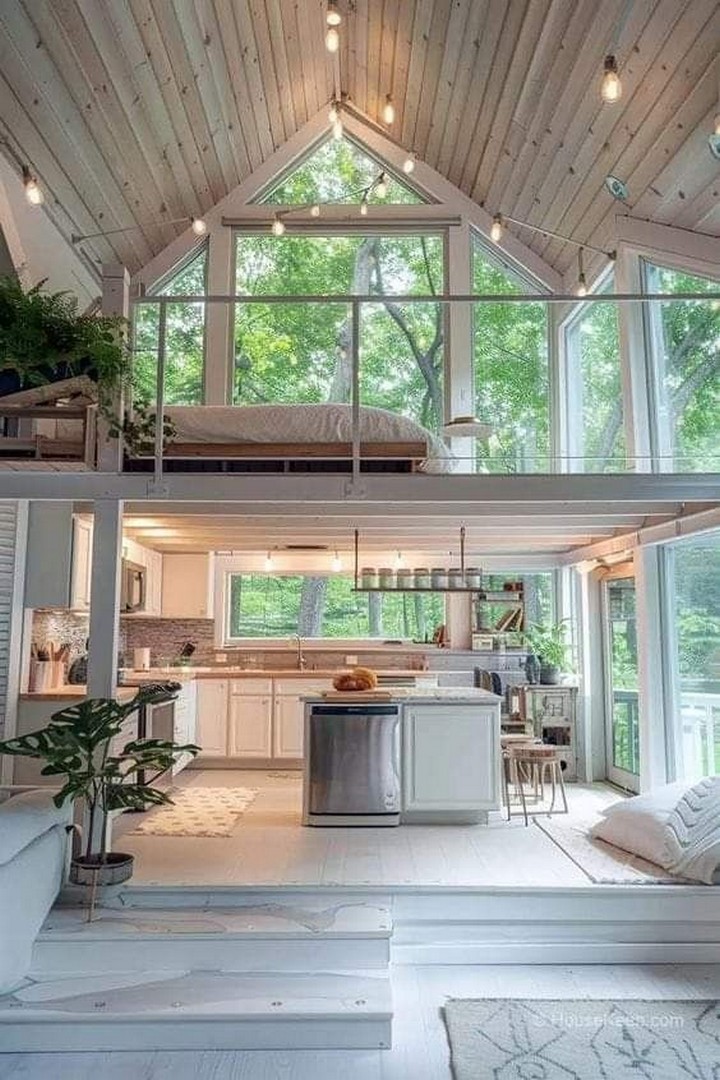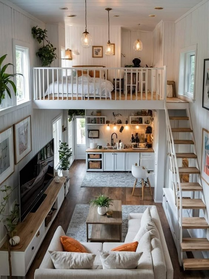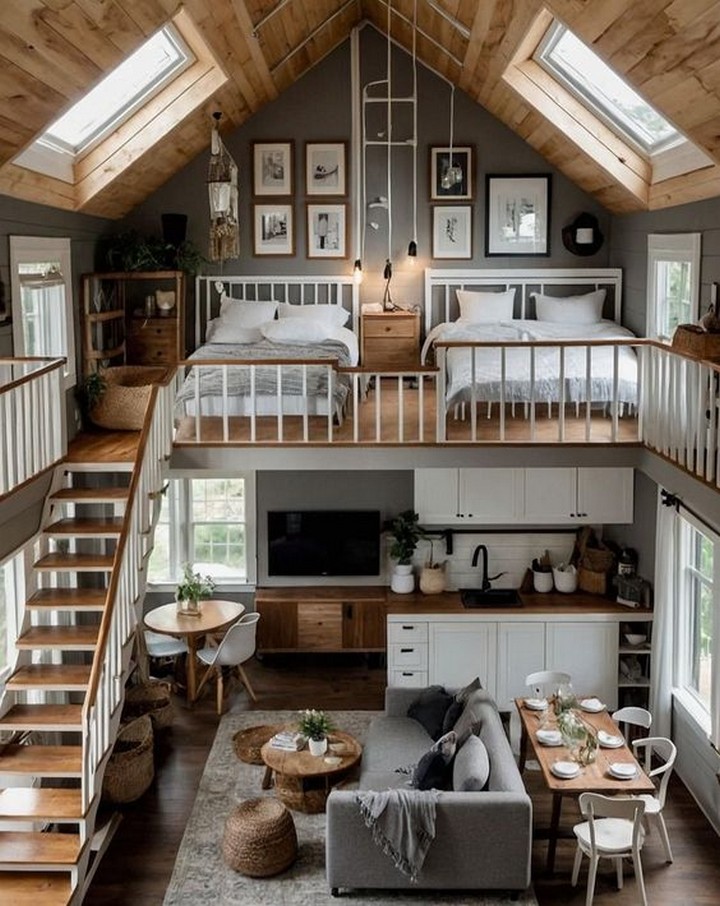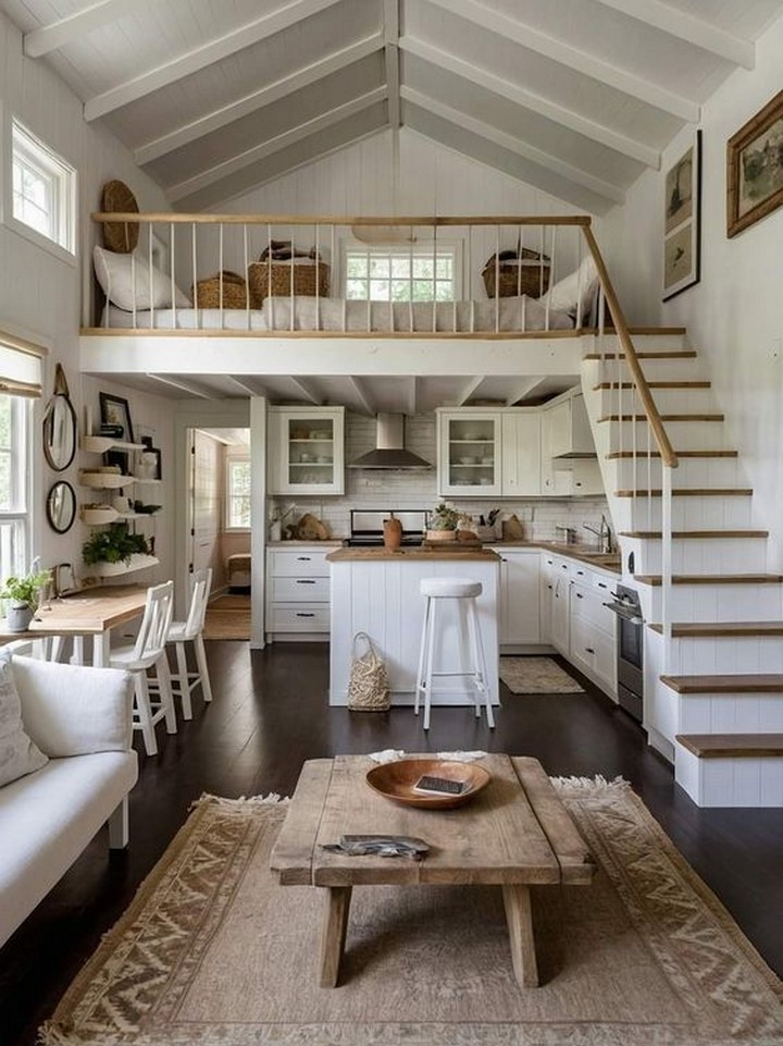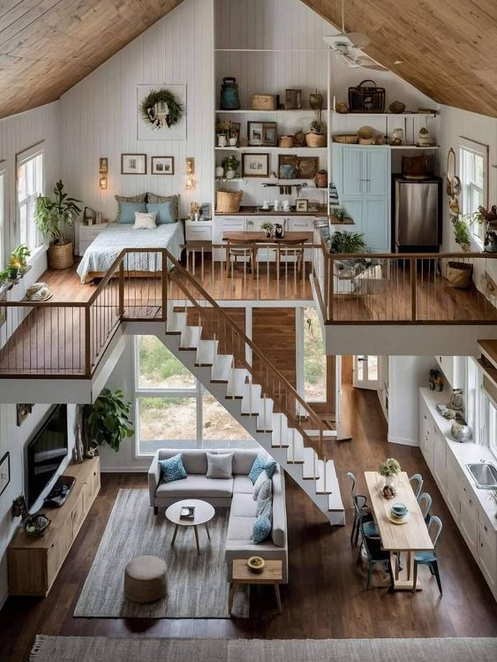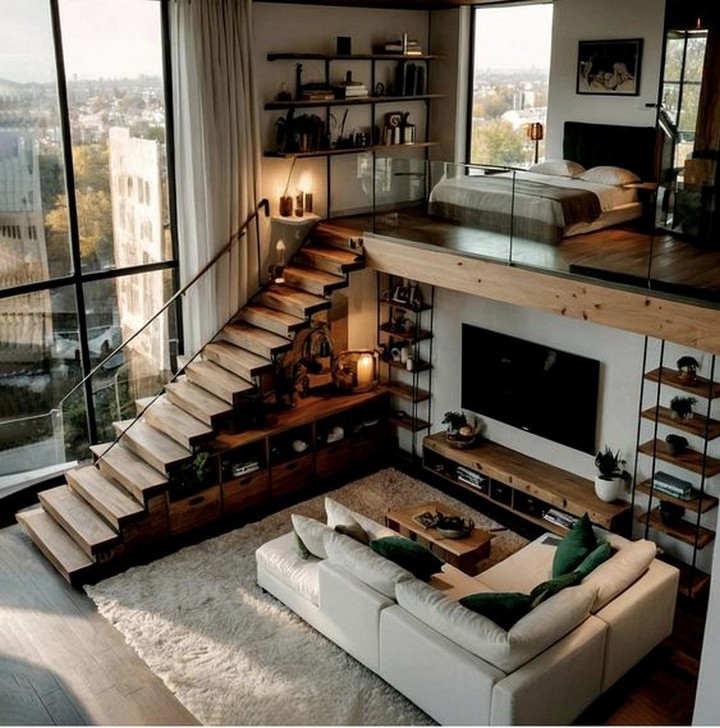 Maximize vertical space in your loft by incorporating a mezzanine level that serves as a sleeping quarters, home office, or cozy reading nook. This elevated platform not only adds a sense of architectural intrigue but also optimizes the use of space in a loft setting.